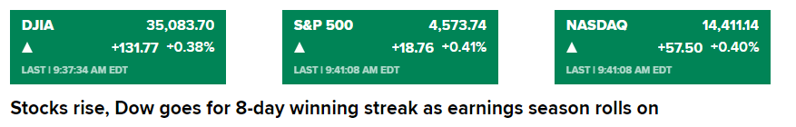 Chứng khoán Hoa Kỳ có phiên tăng mạnh nhất trong gần một tháng trở lại đây, trong bối cảnh nhóm cổ phiếu công nghệ tiếp tục phục hồi và các ngân hàng Mỹ khởi động với một số báo cáo thu nhập quý 2 vượt dự kiến. Cụ thể, cổ phiếu của Bank of America và Bank of New York Mellon tăng vọt hơn 4%. Cổ phiếu của Morgan Stanley +6.4%. Đối với lĩnh vực công nghệ, đáng chú ý Microsoft đã quyết định tăng chi phí AI Chatbot đối với người dùng Office thêm $30/tháng. Cuối phiên, cổ phiếu Microsoft tăng đến gần 4%. Chỉ số Dow Jones dẫn đầu đà tăng với hơn 360 điểm: