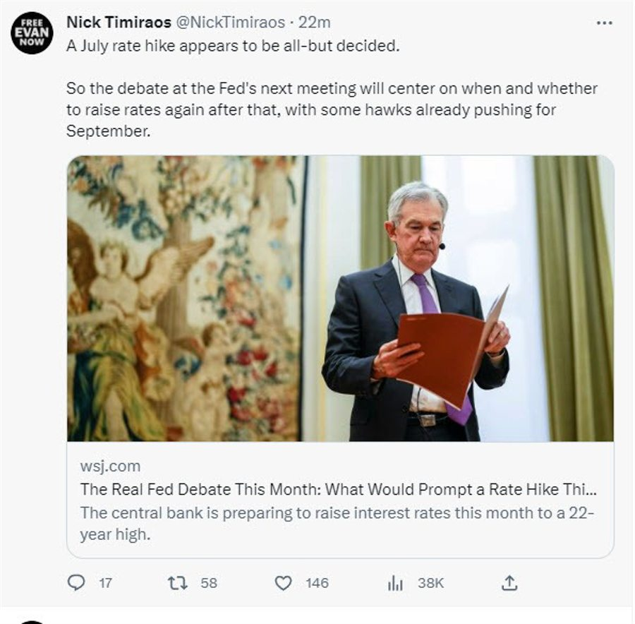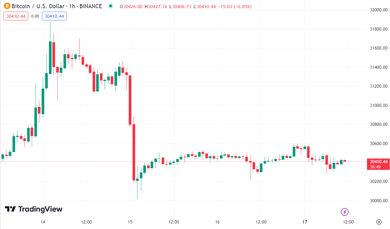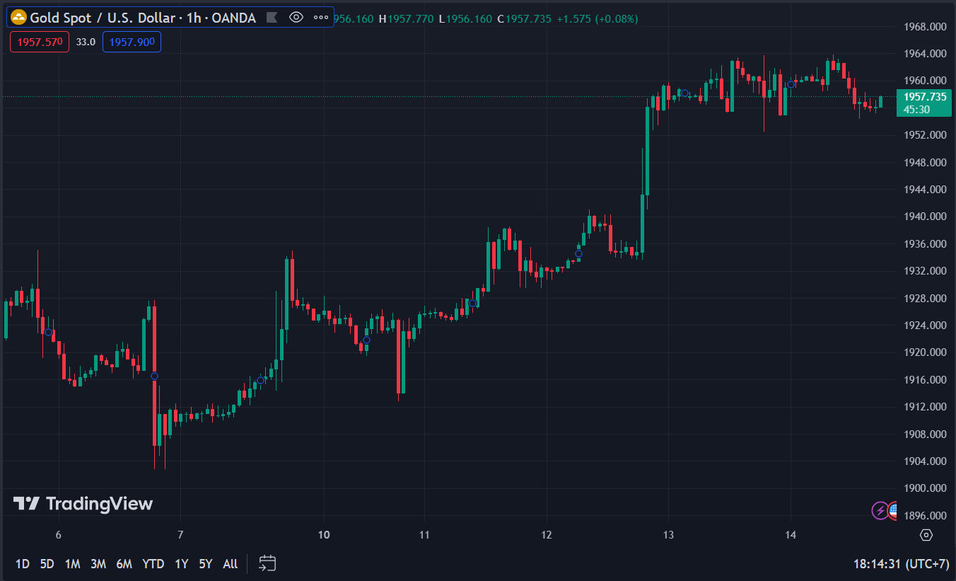 Vàng nhanh chóng lấp mức giảm hơn $10 sau dữ liệu tâm lý tiêu dùng và lạm phát Hoa Kỳ đầu phiên Mỹ do USD và lợi suất tăng nhẹ. Chốt phiên, vàng giảm $5.14 xuống $1954.80/oz. Trên thị trường nợ, lợi suất 2 năm và 10 năm lần lượt tăng 13.1bp và 6.5bp lên 4.772% và 3.834%. Dầu thô giảm mạnh $1.47 xuống $75.42/thùng do dữ liệu giữa phiên Mỹ. Bitcoin lấp mức tăng mạnh của ngày giao dịch thứ Năm sau pha lao dốc xuống 29.9K từ đỉnh ngày tại 31.6K. Trong hai ngày giao dịch cuối tuần, BTC gần như chỉ đi ngang quanh vùng 30.2K.