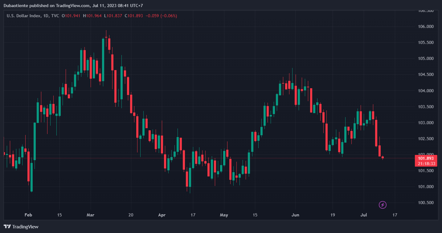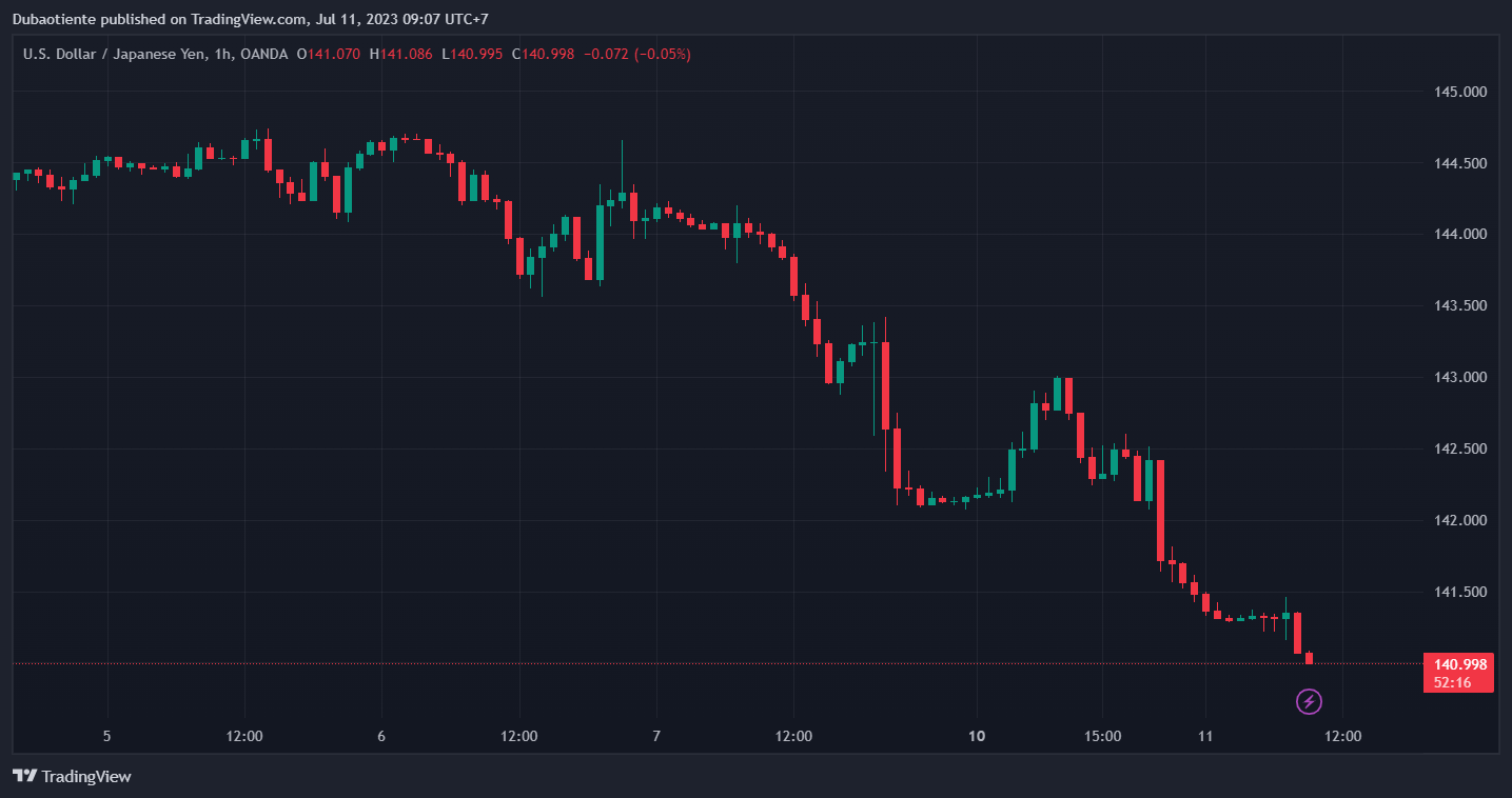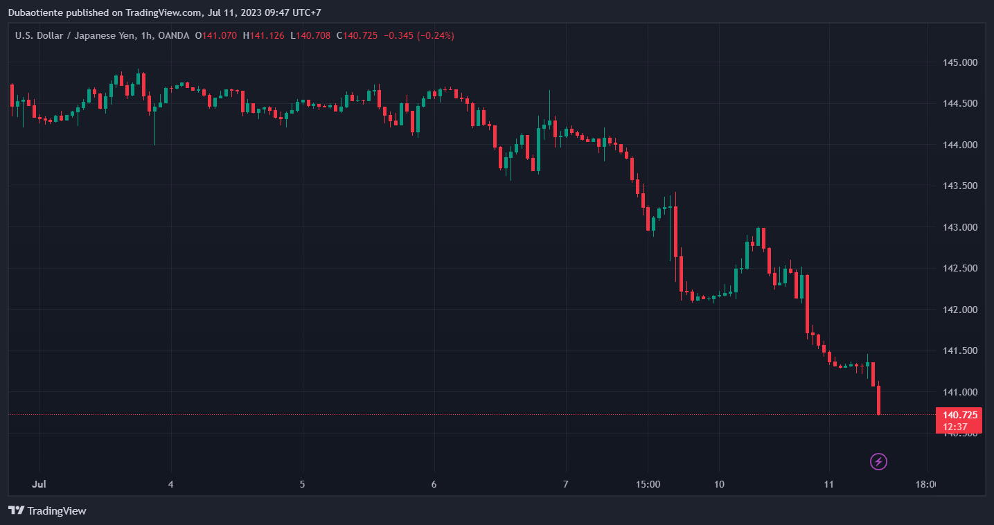 Trên thị trường FX, USD suy yếu trên diện rộng (ngoại trừ các đồng antipodean và CAD) sau báo cáo chỉ số xe đã qua sử dụng Mannheim tháng 6 ghi nhận mức giảm mạnh nhất trong lịch sử tại Hoa Kỳ (-4.2% m/m và -10/3% y/y). Được biết giá ô tô đã qua sử dụng là một yếu tố đã thúc đẩy CPI lõi tiếp tục tăng cao. Dự kiến CPI lõi sẽ giảm xuống +0.3% mức +0.4% trong tháng 6 năm 2023. So với cùng kỳ năm ngoái, chỉ số này dự kiến sẽ +5% - vẫn cao hơn nhiều so với mục tiêu 2%. Chốt phiên, JPY tăng nhiều nhất so với USD.