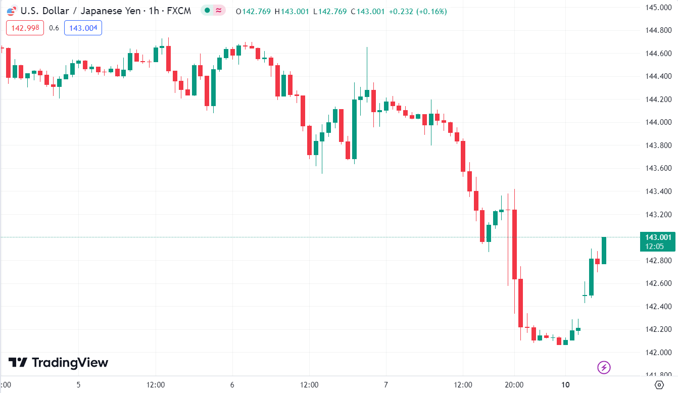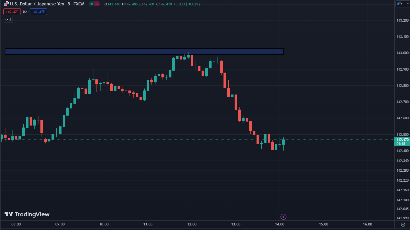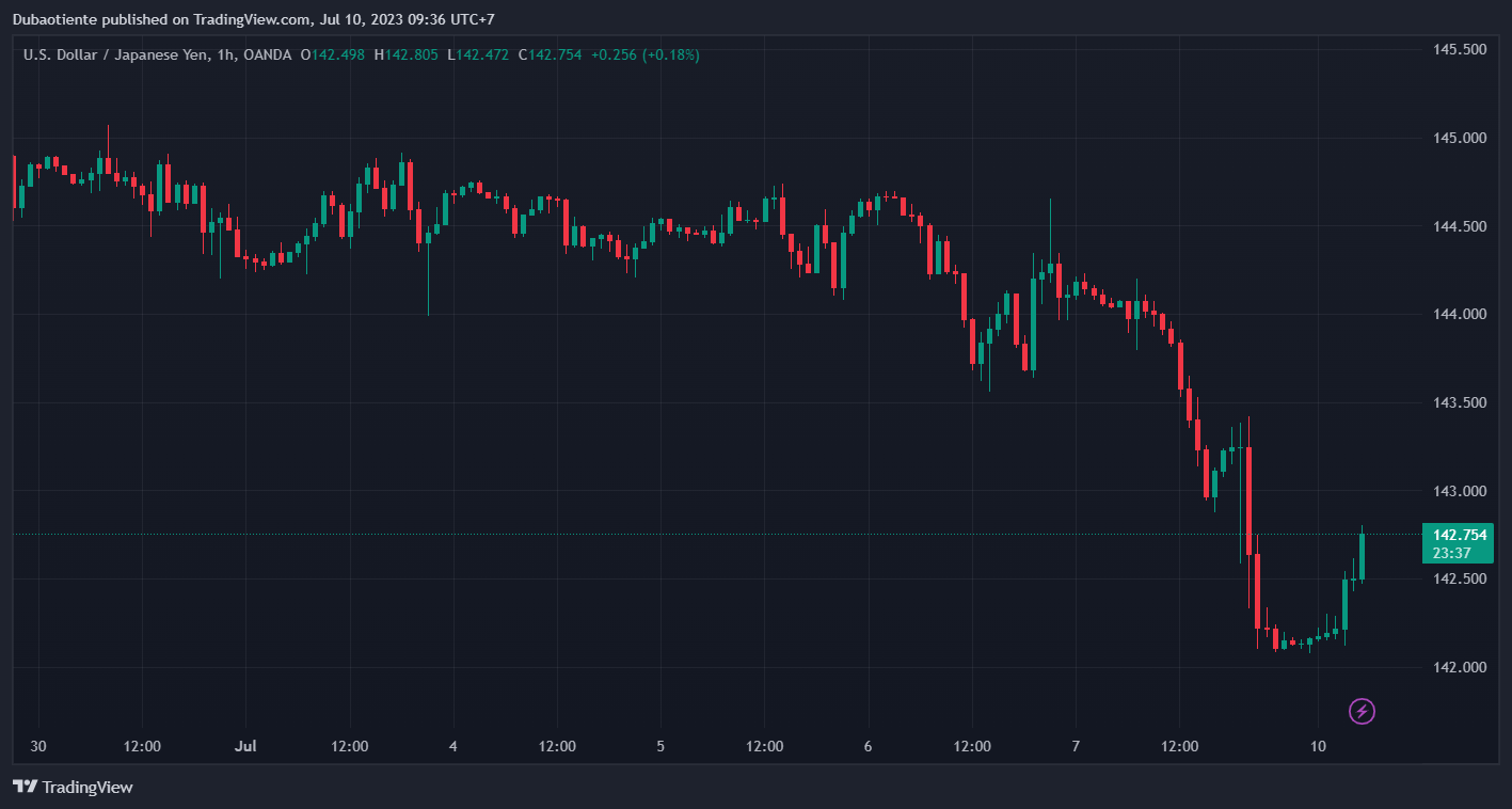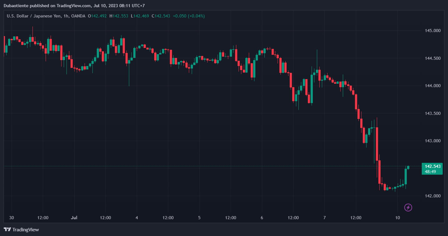 Cặp tiền này đã tăng khoảng 90 pip trước đó nhưng hiện chỉ tăng 40 pip và hiện ở mức 142.45