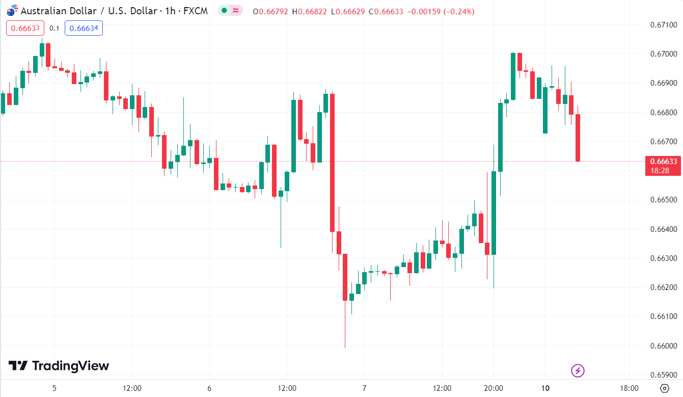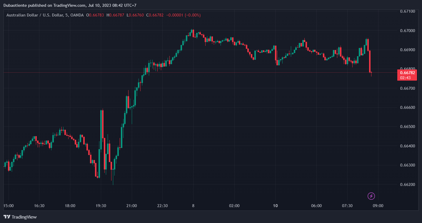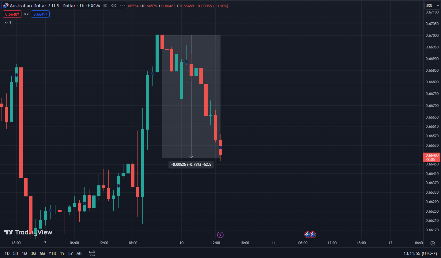 AUDUSD giảm 52.5 pip hiện giao dịch ở mức 0.66489