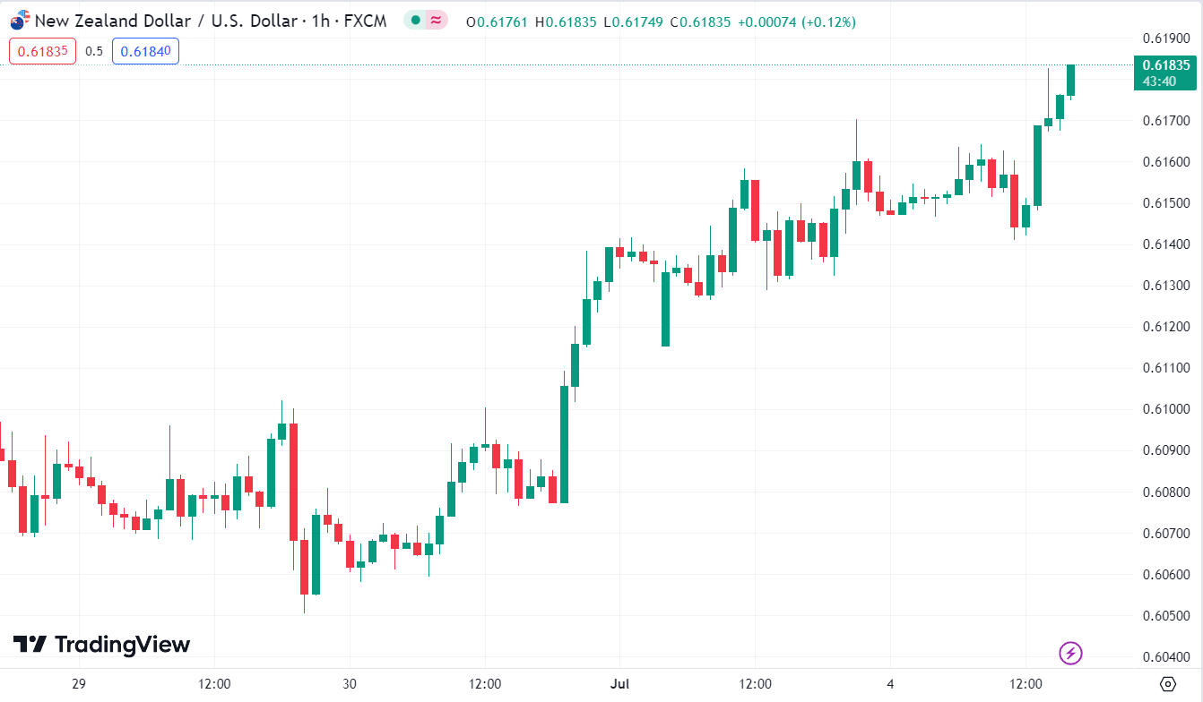 NZDUSD tiếp tục tăng lên mức 0.61835.