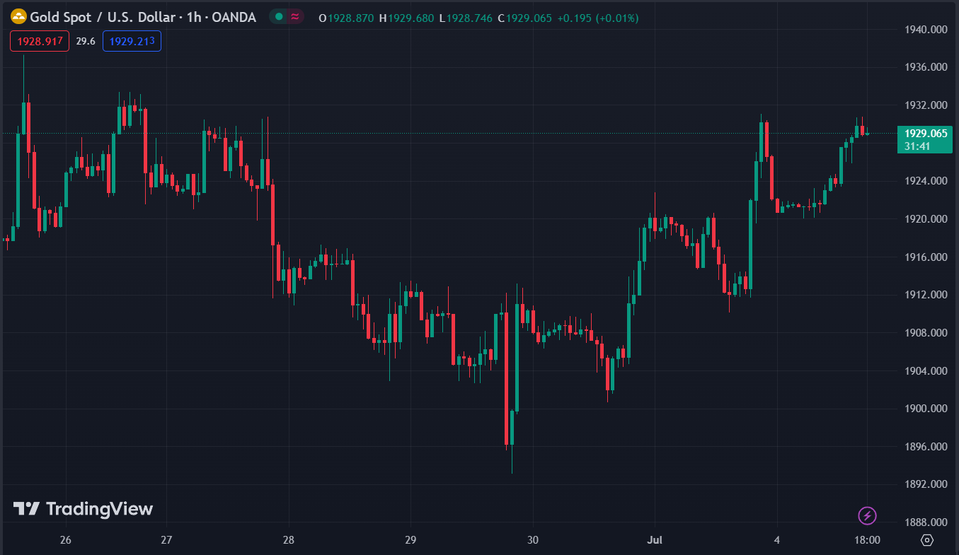 XAUUSD tăng 0.4% trong ngày, hiện dao động quanh $1,929