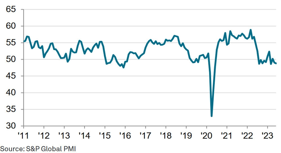 Dữ liệu lạm phát dịch vụ đến từ khảo sát của Jibun Nhật Bản / S&P Global trong tháng 6 năm 2023: