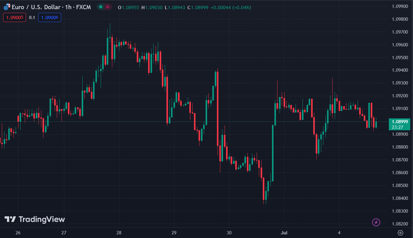EUR/USD đang giao dịch quanh 1.0900. EUR suy yếu khi khẩu vị rủi ro ảm đạm, hỗ trợ cho USD trú ẩn an toàn. Thanh khoản mỏng sẽ kéo dài trong ngày nghỉ Quốc khánh Mỹ.
