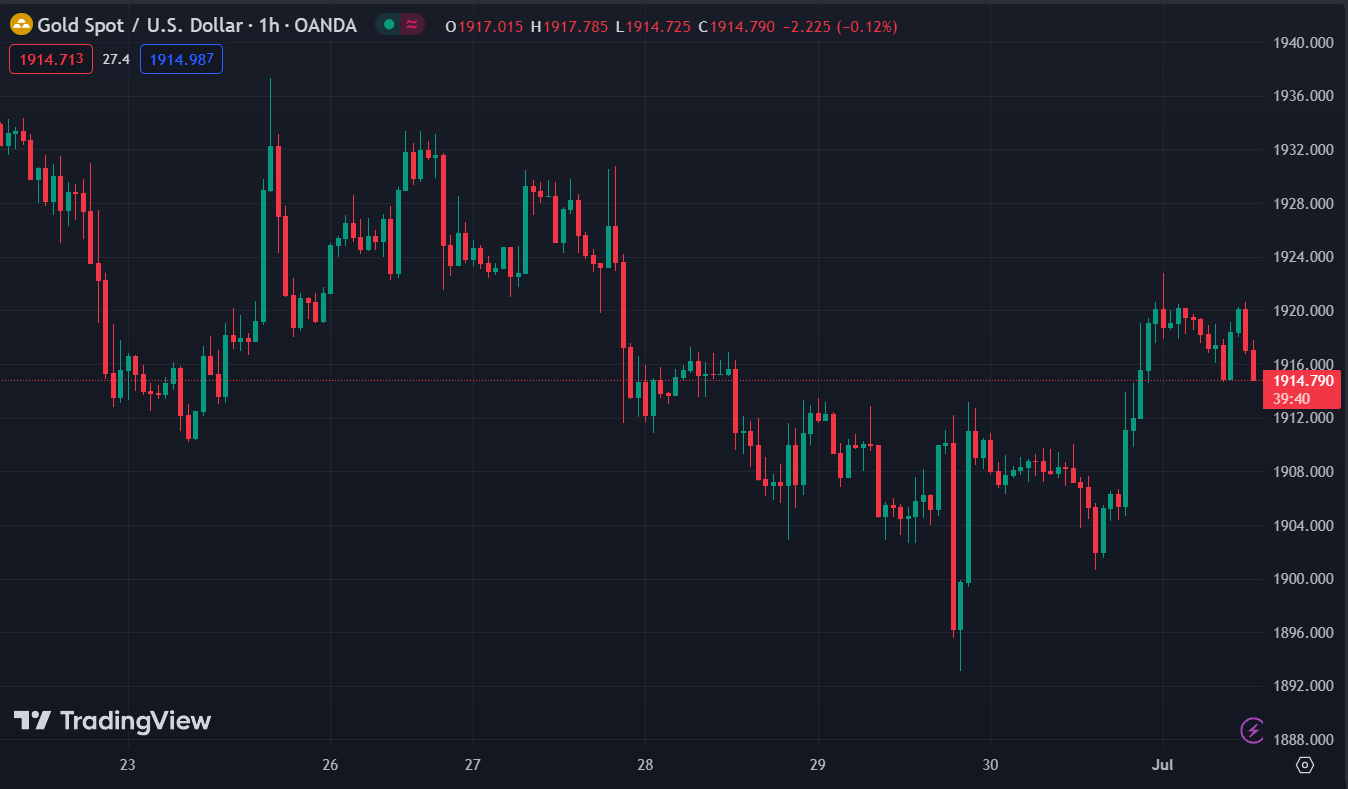 Sau khi tăng nhẹ lên $1,920, XAUUSD hiện giảm trở lại $1,914.65