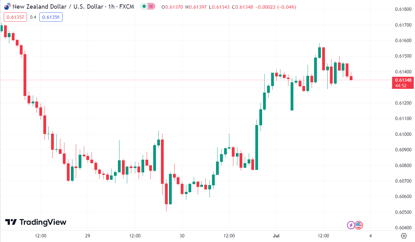 NZDUSD hiện đã đảo chiều giảm nhẹ xuống mức 0.61348.