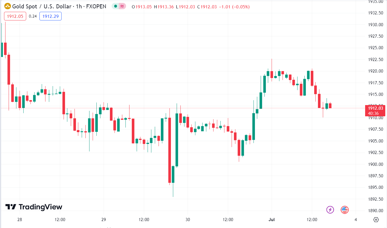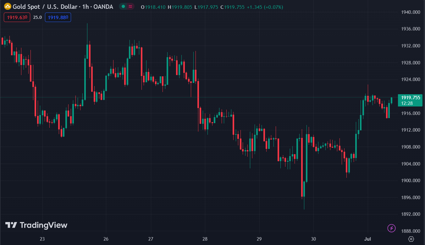XAUUSD tăng 0.01% trong ngày, hiện ở $1,919.71