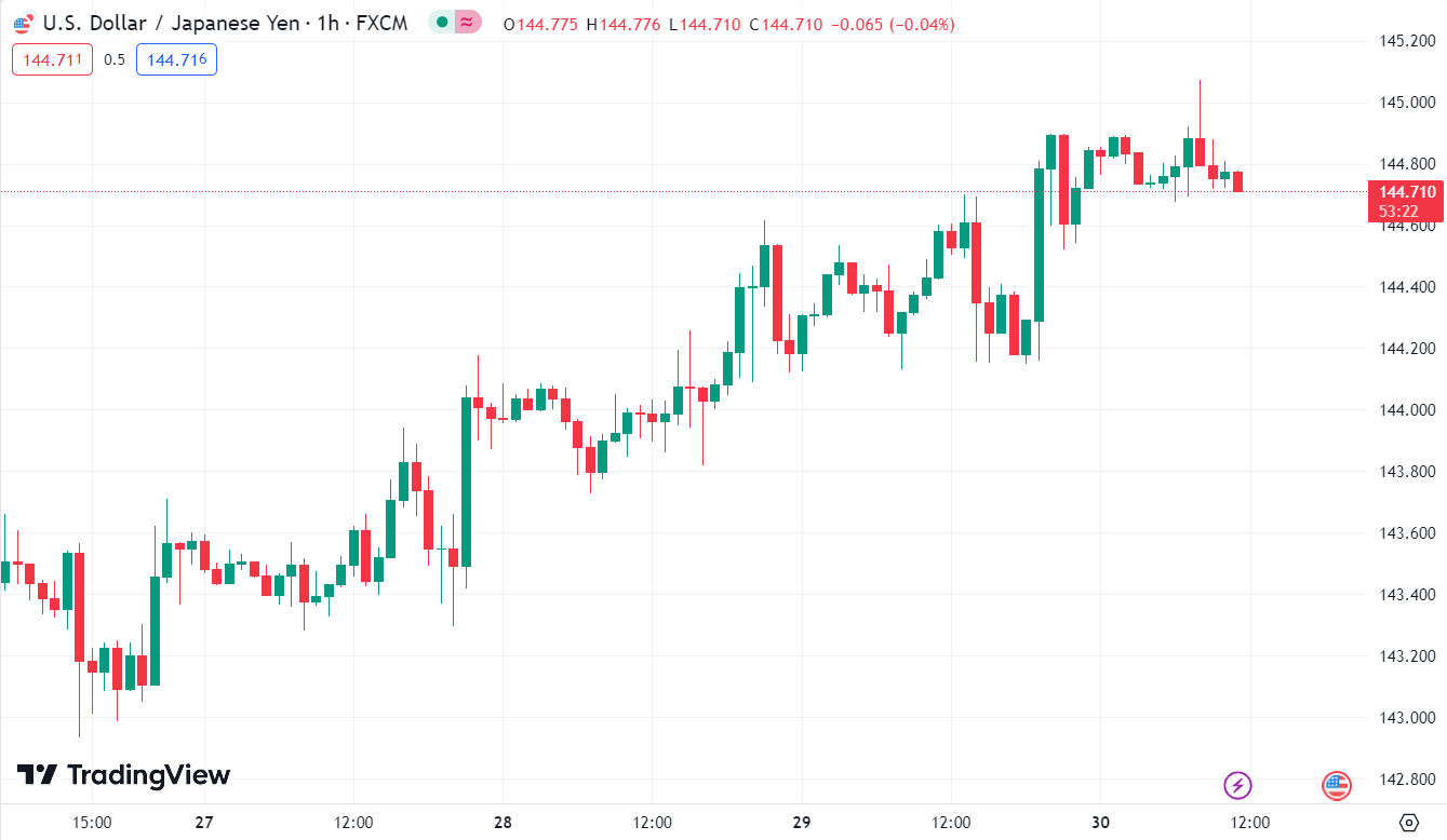 USDJPY hiện đang đảo chiều giảm nhẹ xuống mức 144.710.