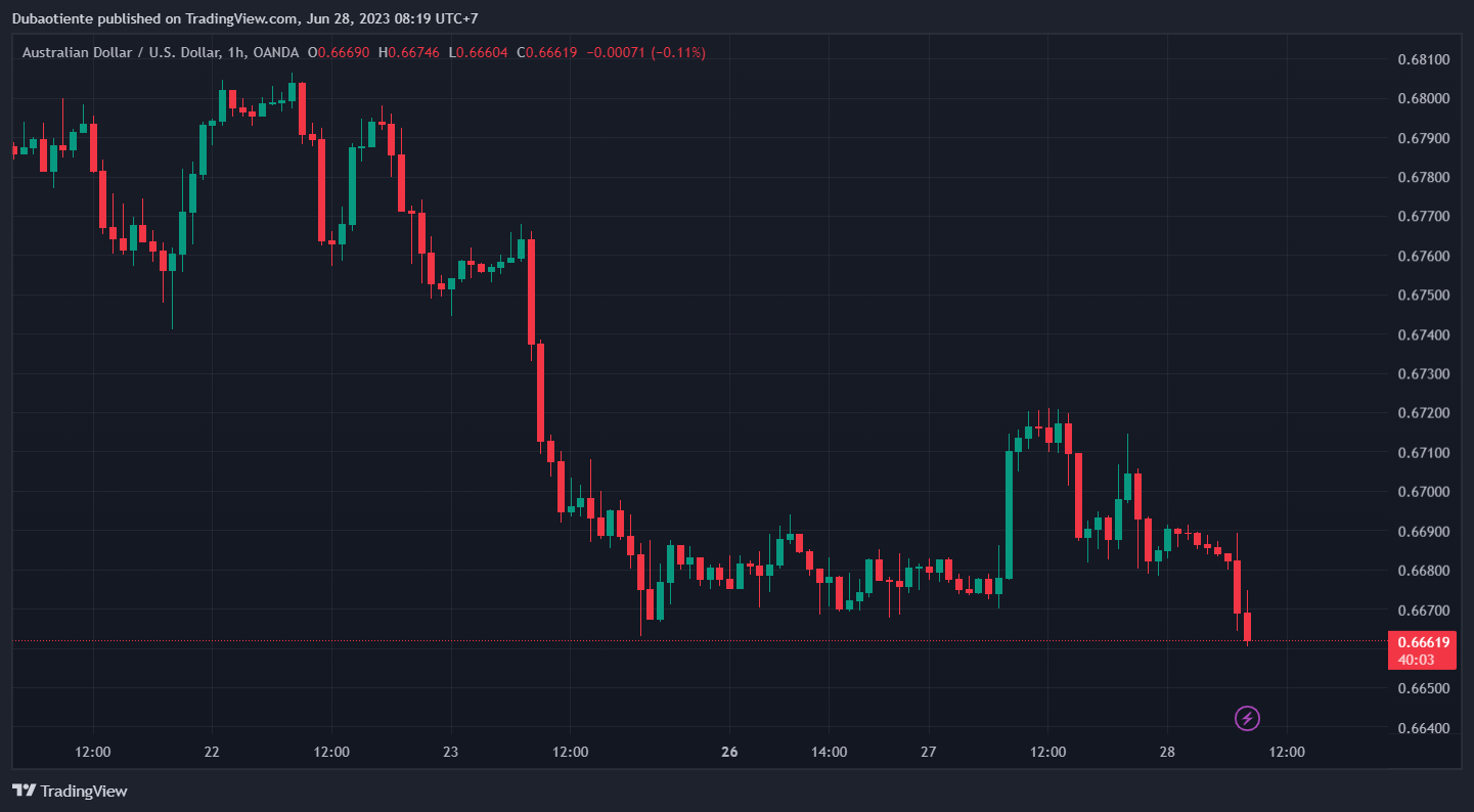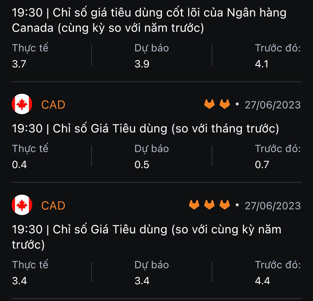 Trên thị trường FX, USD giảm ngày thứ hai liên tiếp trên diện rộng sau pha giảm hơn 25 pip đầu phiên Á, bất chấp một loạt các dữ liệu kinh tế có lợi chỉ giúp đồng bạc xanh phục hồi từ đáy. NZD thoái lui phần lớn mức tăng đầu phiên Á và kết phiên ở gần mức giá mở cửa trong ngày. CAD suy yếu từ đầu phiên Âu và tiếp tục mở rộng đà giảm do báo cáo CPI tháng 5 ghi nhận dấu hiệu hạ nhiệt (+3.4 y/y so với tháng trước là +4.4%). Cặp tỷ giá USD/JPY đã chạm mốc 144 sau dữ liệu doanh số bán nhà mạnh mẽ trong phiên Mỹ, 145 sẽ là ngưỡng mà thị trường kỳ vọng chính phủ Nhật Bản sẽ có động thái can thiệp bằng lời nói để tránh JPY tiếp tục mất giá quá nhanh.