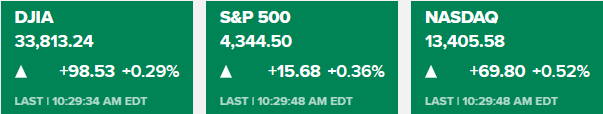Chứng khoán Hoa Kỳ khởi sắc trở lại khi nhóm cổ phiếu công nghệ nhanh chóng lấy lại sức hút và thị trường tiêu hóa các dữ liệu kinh tế tích cực trong ngày. Số lượng đơn đặt hàng lâu bền bất ngờ tăng trong tháng 5 (+1.7% so với dự báo -0.8%), tâm lý người tiêu dùng có sự cải thiện (đạt 109.7 so với dự báo 104 điểm) và doanh số bán nhà vượt kỳ vọng (+763K so với dự báo 677K) khi chạm mức cao nhất trong hơn 1 năm trở lại đây. Có thể thấy, bất chấp những lo ngại suy thoái kinh tế âm ỉ từ đầu năm đến nay do Fed liên tục tăng lãi suất và sự sụp đổ của hệ thống ngân hàng, nền kinh tế vẫn trên đà tăng trưởng vững chắc. Kết phiên, chỉ số Dow Jones kết thúc chuỗi 07 ngày giảm liên tiếp: