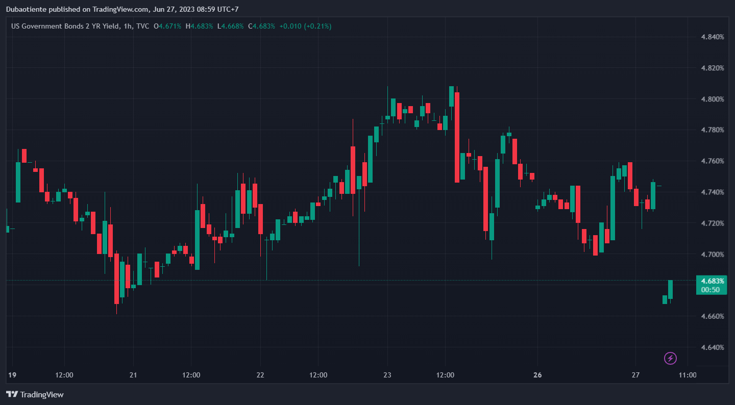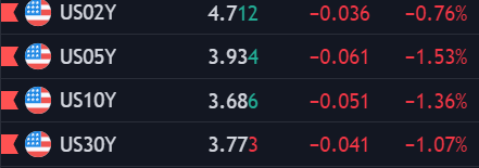 - Lợi suất trái phiếu 10 năm của Mỹ giảm 5.5 điểm cơ bản xuống 3.685%