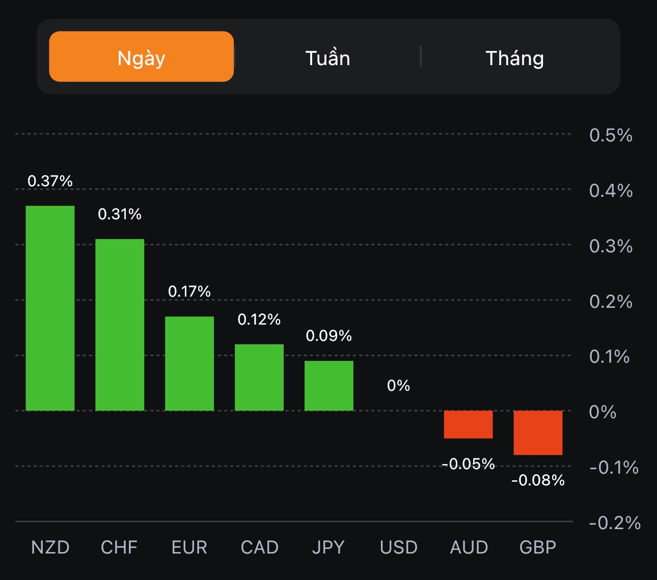 - CHF mạnh nhất, GBP yếu nhất nhóm G7