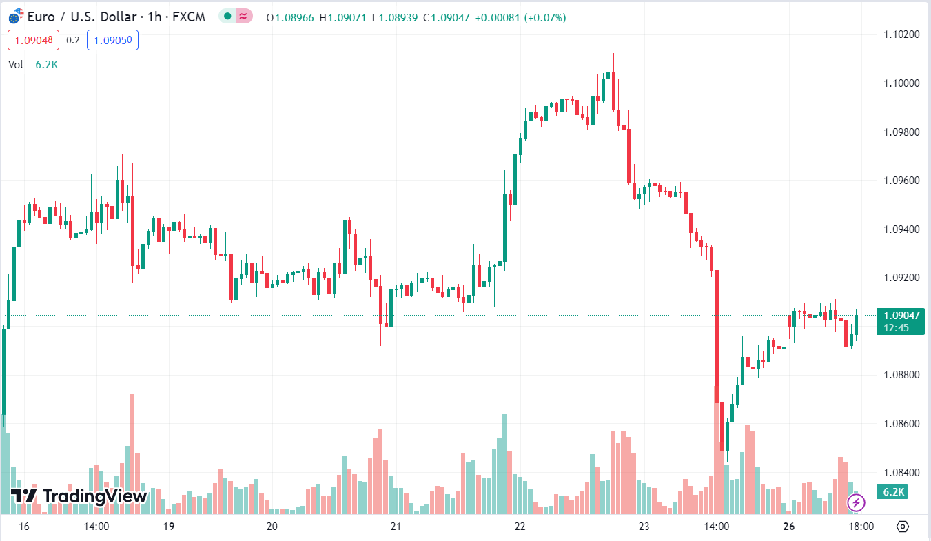 EURUSD tăng 0.08%, giằng co quanh 1.0905