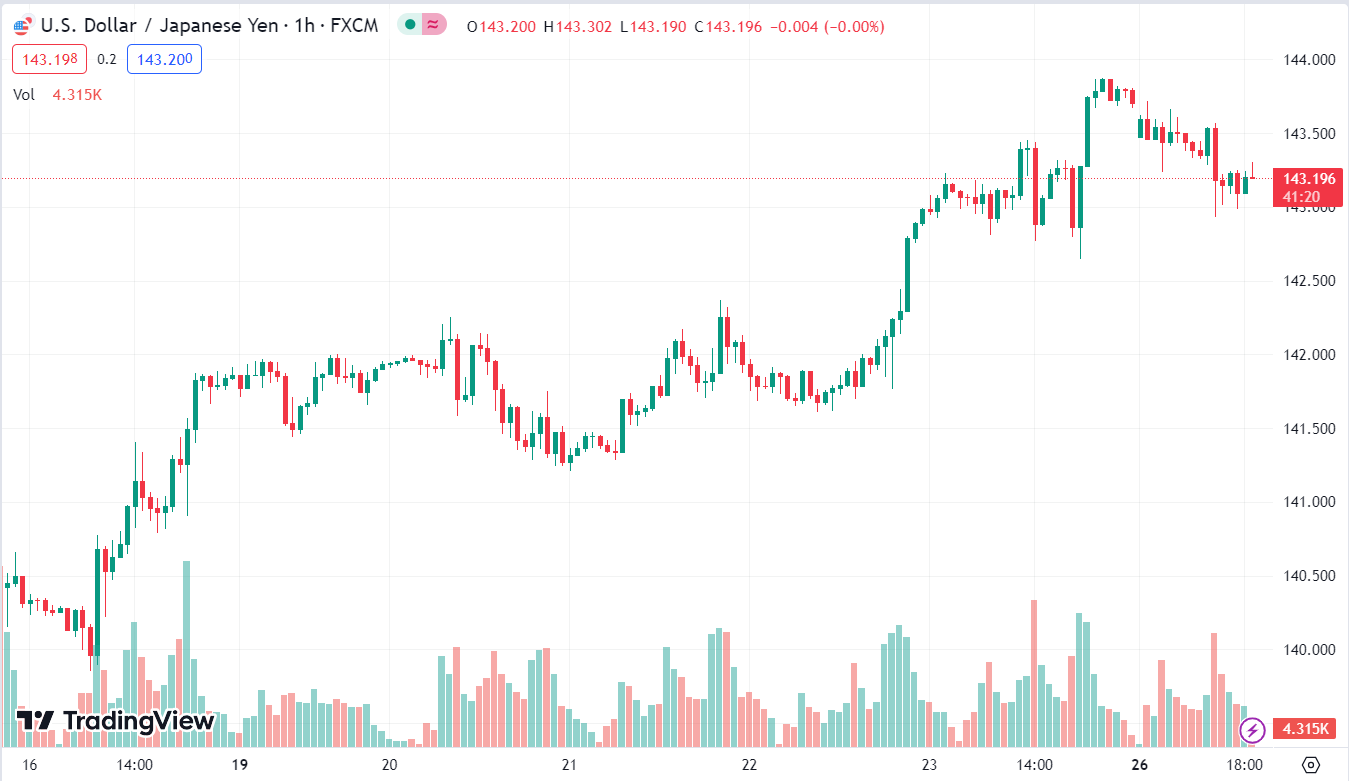 USDJPY duy trì trên 143.00