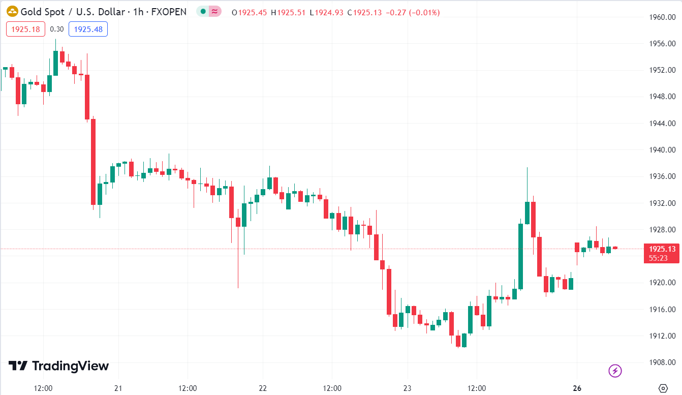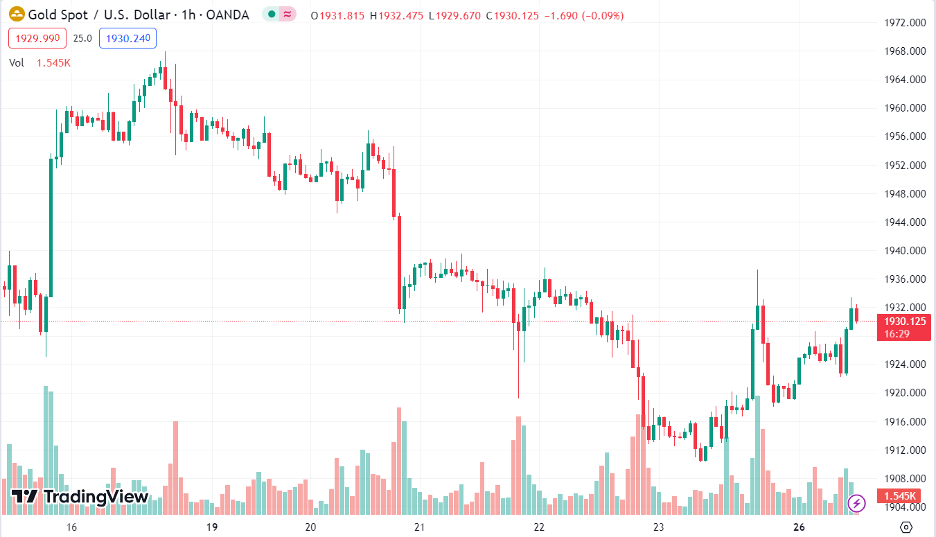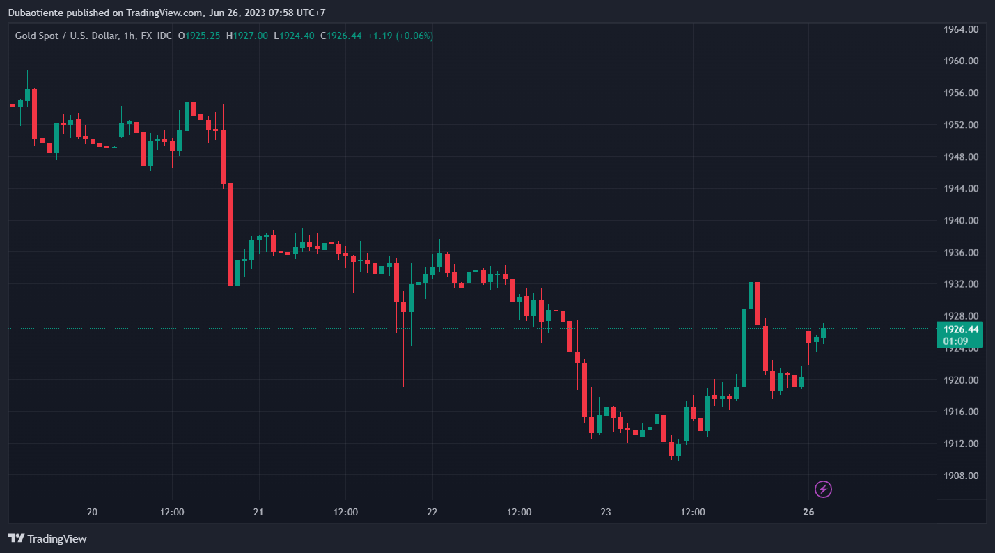 XAUUSD giảm 0.09% xuống dao động quanh $1,930