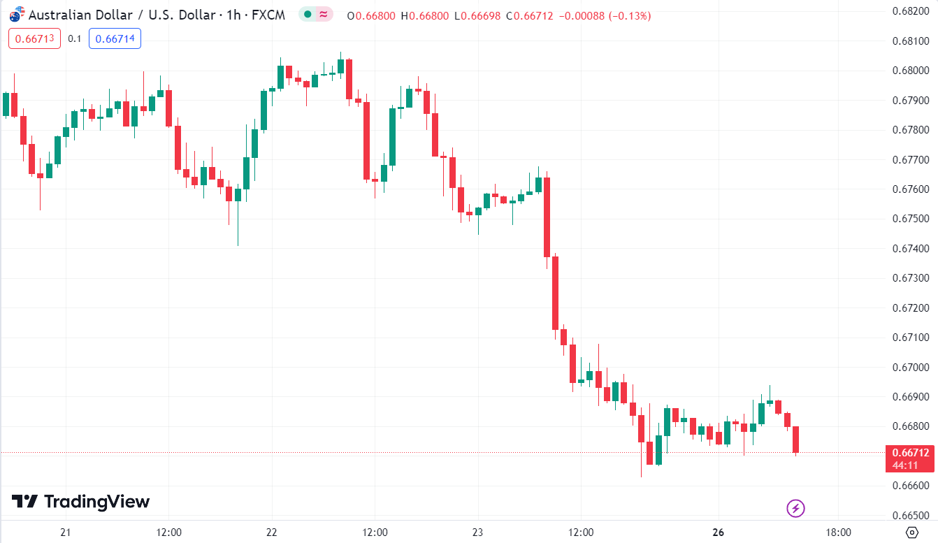 AUDUSD đảo chiều giảm nhẹ xuống mức 0.66712.