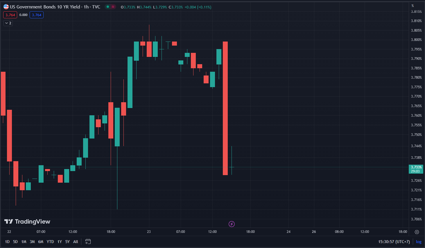 Lợi suất trái phiếu 10 năm của Mỹ giảm 6.2 điểm cơ bản xuống 3.736%