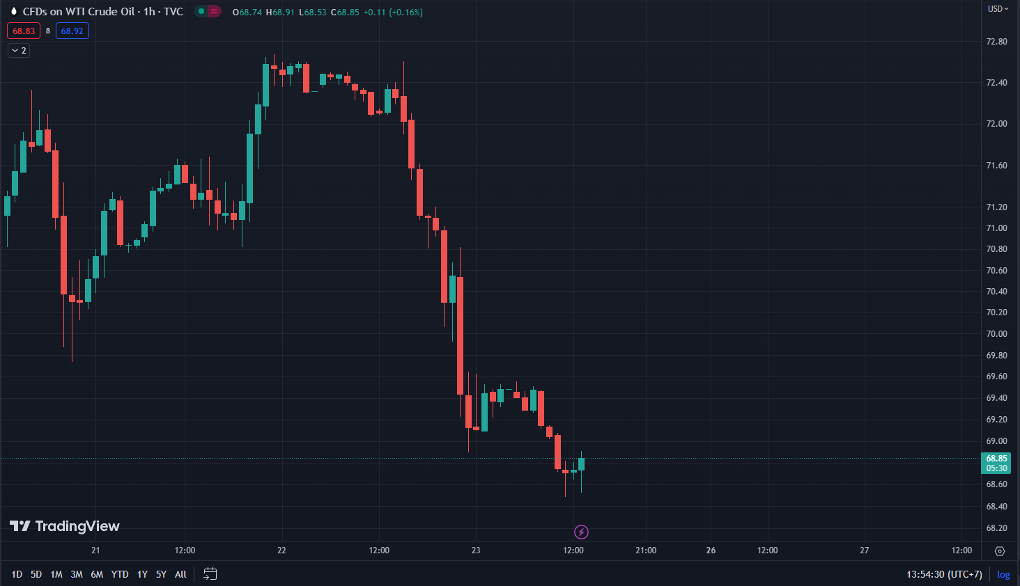 Dầu thô WTI giảm 1.4% xuống 68.53 USD