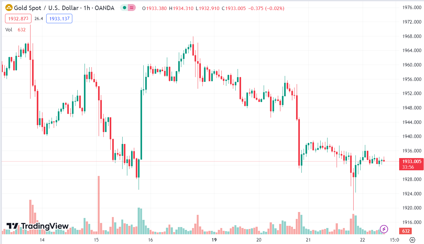 Vàng đã có một phiên giao dịch đầy biến động khi suy yếu đầu phiên Mỹ, hồi nhẹ khi cuộc điều trần của chủ tịch Fed Powell diễn ra trước khi giảm trở lại và kết phiên ở $1932. Dầu thô WTI tăng $1.45 lên $72.64. Lợi suất 10 năm của Mỹ không đổi ở mức 3.72%.