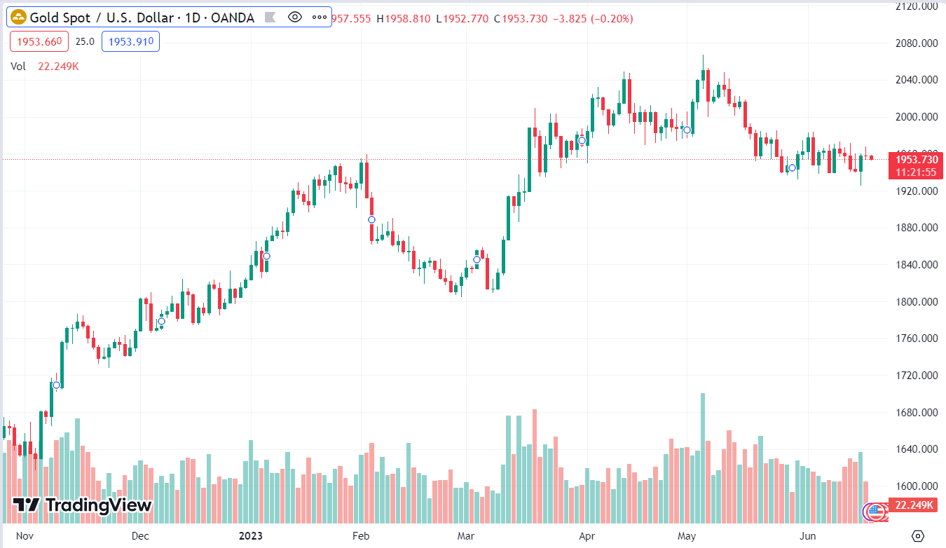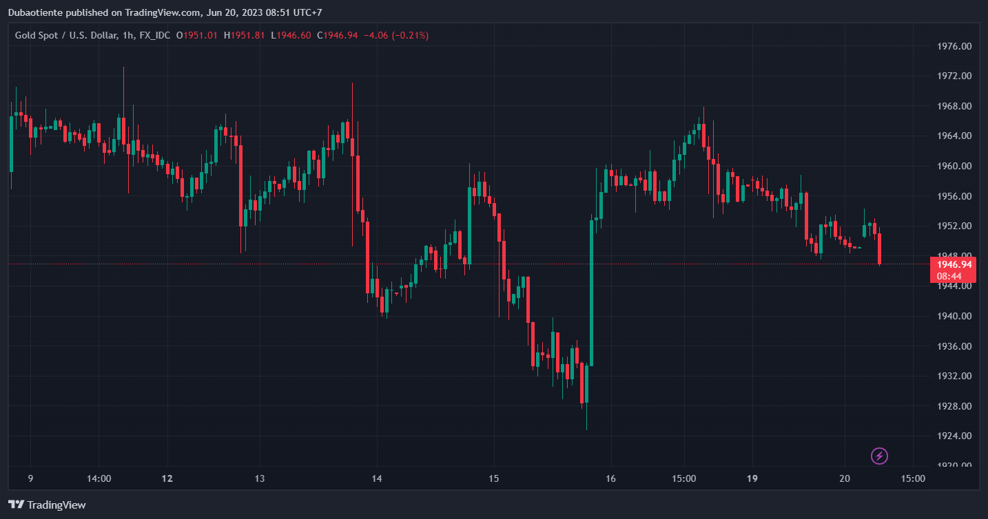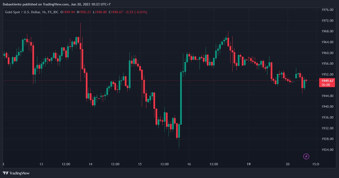 XAUUSD giảm 0.19% xuống $1,953.72