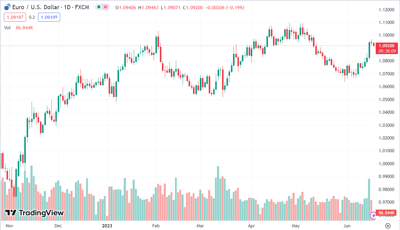 Cặp tiền giảm 0.19%, hiện ở 1.0919