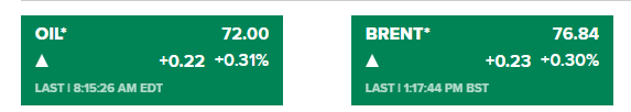 - Dầu thô WTI tăng 0.31% lên $72.00