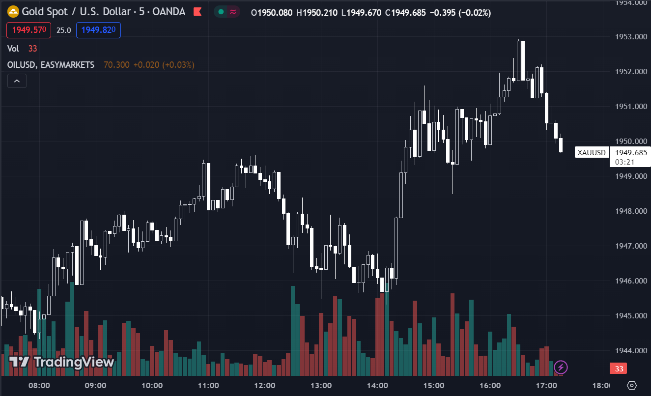 Vàng tăng $2 lên $1945. Lợi suất trái phiếu kho bạc kỳ hạn 10 năm giảm 3.9 điểm cơ bản xuống 3.79% trong khi lợi suất kỳ hạn 2 năm tăng lên 4.8% trước khi giảm xuống 4.7% khi thị trường không tin rằng lãi suất sẽ duy trì trên 5% trong thời gian dài. Dầu đảo chiều giảm sau quyết định của Fed khi dầu thô WTI giảm 68 cent xuống còn 68.74 USD.