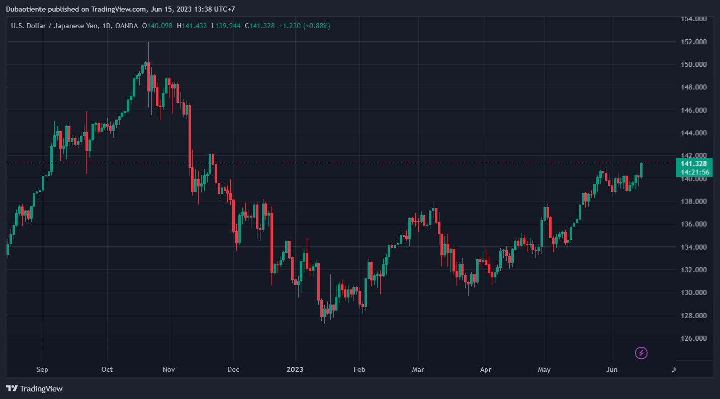 Tỷ giá USD/JPY tăng 0.9% lên trên 141.00 kể cả khi có rất ít hoặc không có tin tức nào liên quan tới Nhật Bản mà cặp tiền tệ này tăng chỉ đơn thuần bởi cuộc họp FOMC ngày hôm qua.