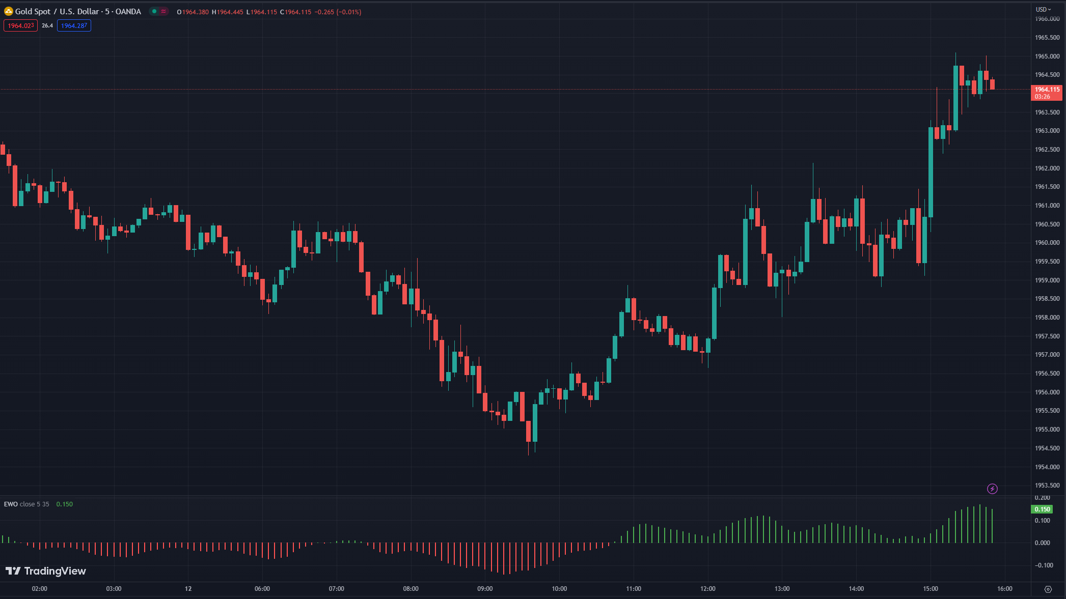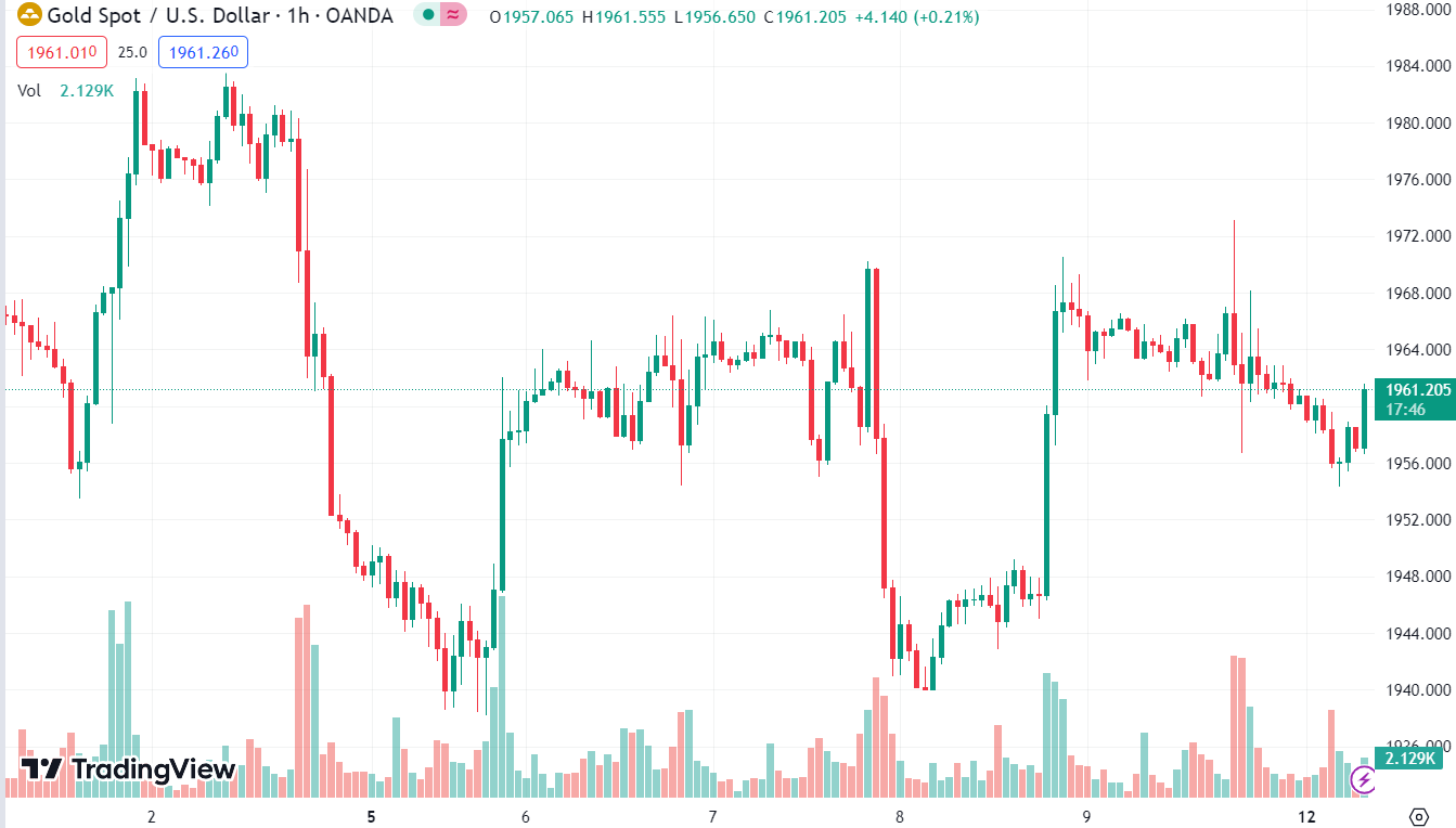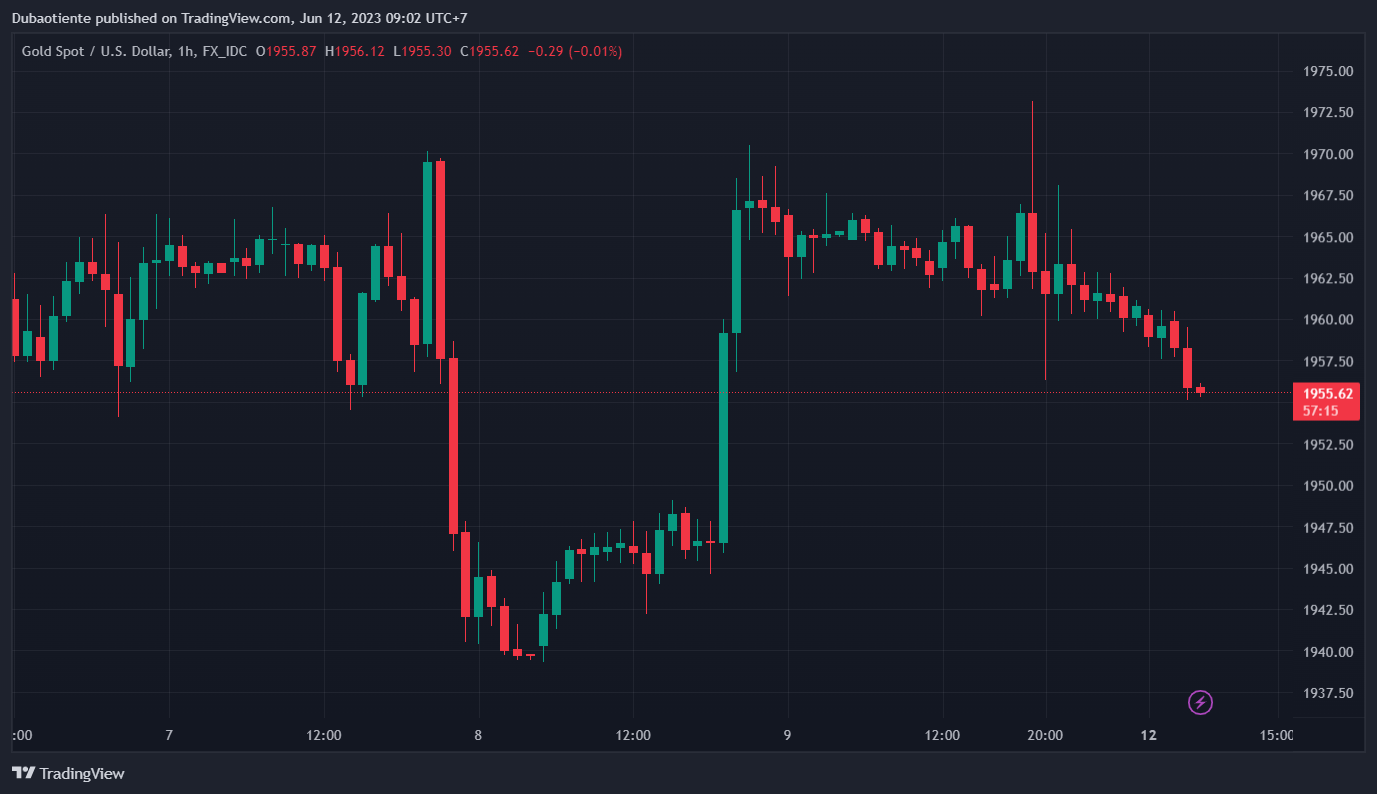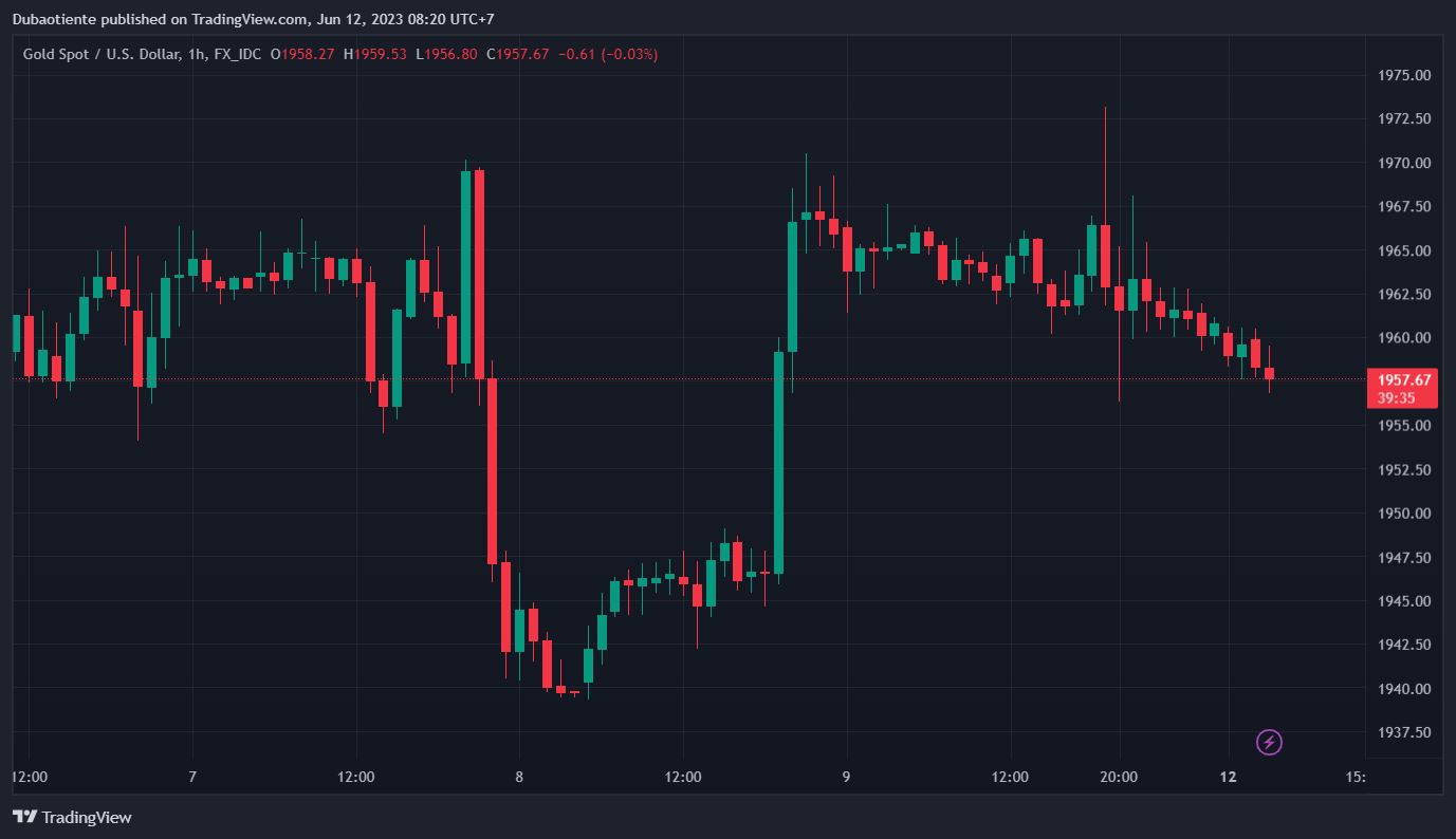 XAUUSD tăng 0.02% trong ngày, hiện ở $1,961.10