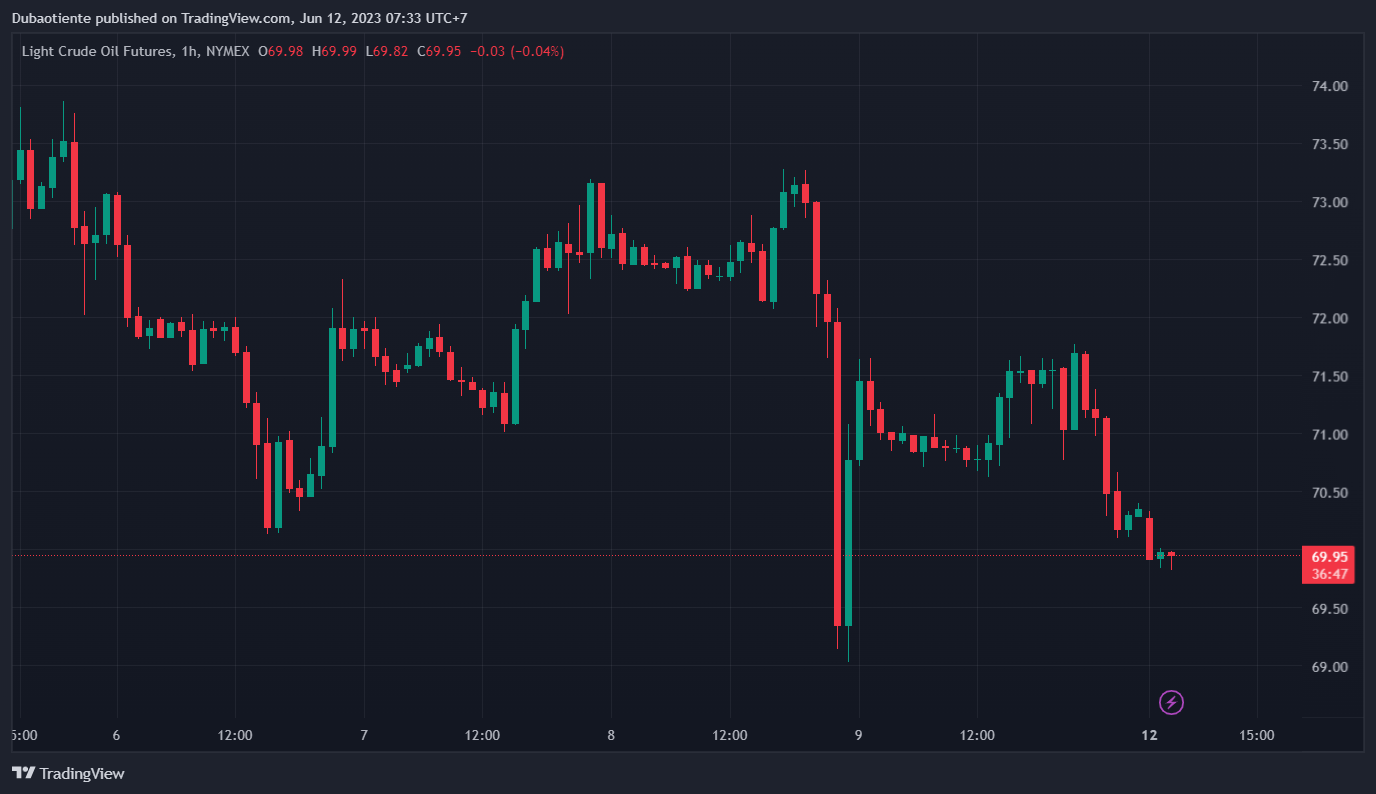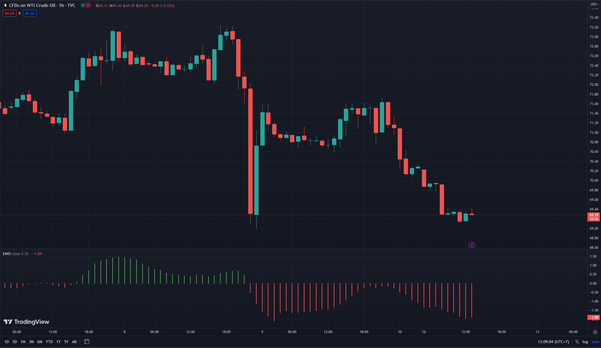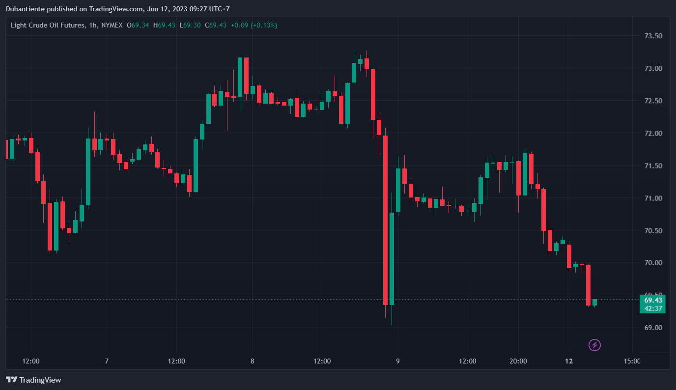Phiên giao dịch ngày hôm nay chứng kiến giá dầu WTI giảm mạnh 1.4%. Dự kiến giá dầu WTI hôm nay sẽ tiếp tục đi ngang trong khoảng $69 cho đến khi volume giao dịch nhỏ lại trước khi xác định được xu hướng tiếp theo.