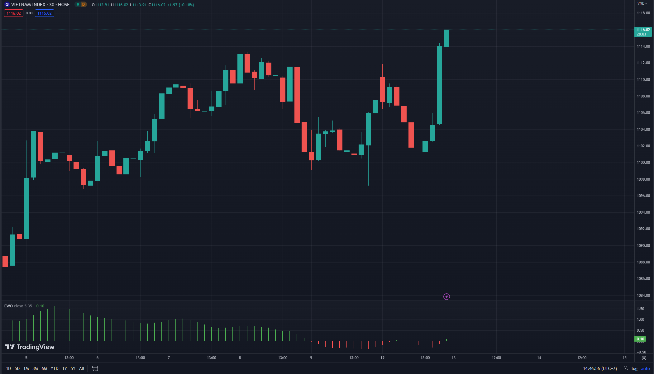 Sau khi giảm nhẹ vào phiên sáng hôm nay, phiên chiều chứng kiến sức tăng mãnh liệt của chỉ số VNIndex, tăng 16 điểm chỉ trong 2 tiếng giao dịch. Đà tăng này được dẫn đầu bởi 1 số cổ phiếu tiềm năng trong thời gian tới như EIB, GEX, PDR..