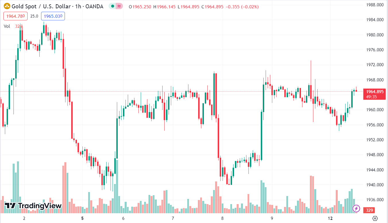 XAUUSD tăng 0.24% trong ngày, hiện ở $1,965.40