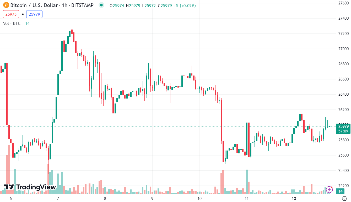 BTCUSD tăng 0.15% trong ngày, hiện ở $25,979