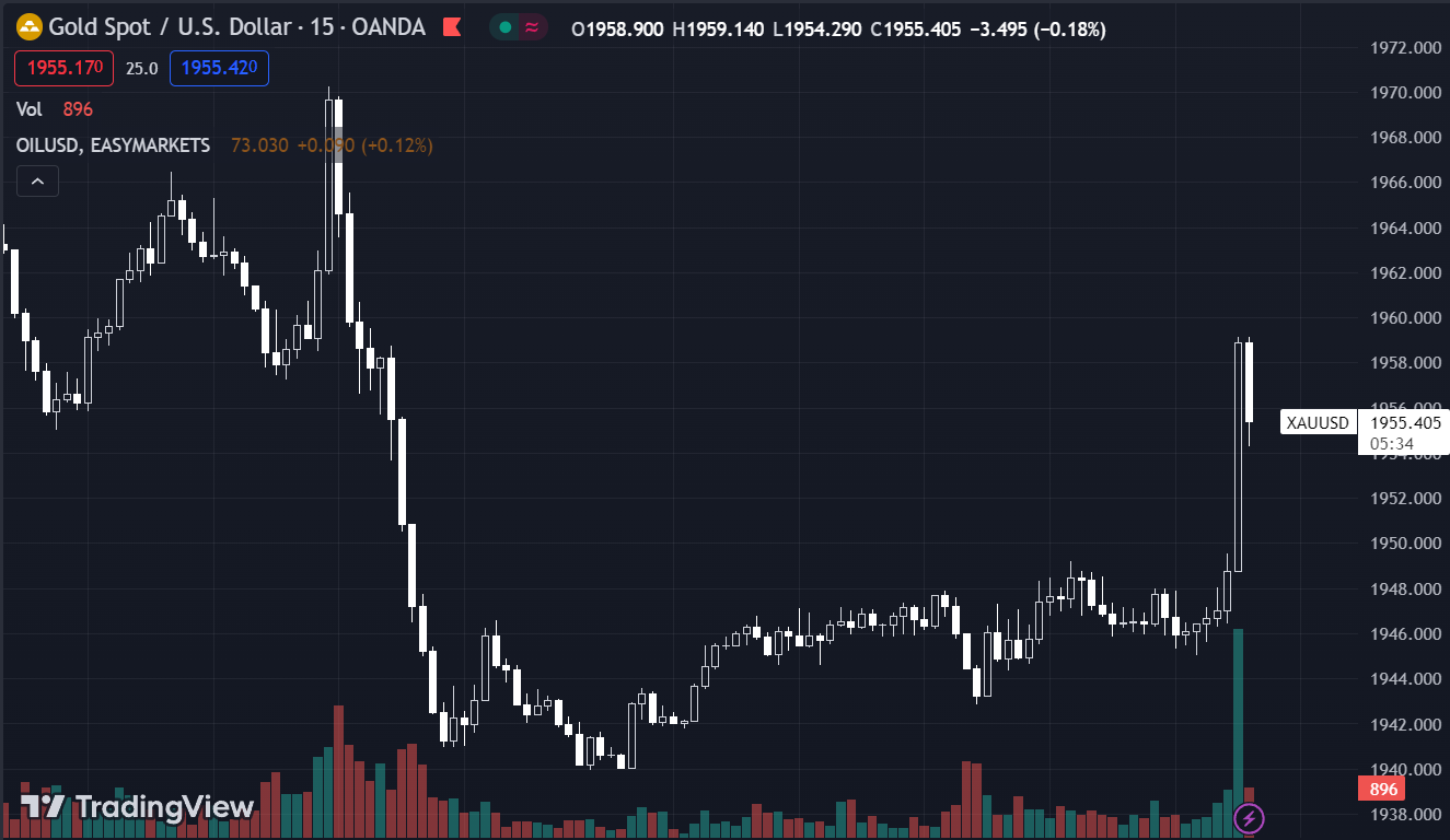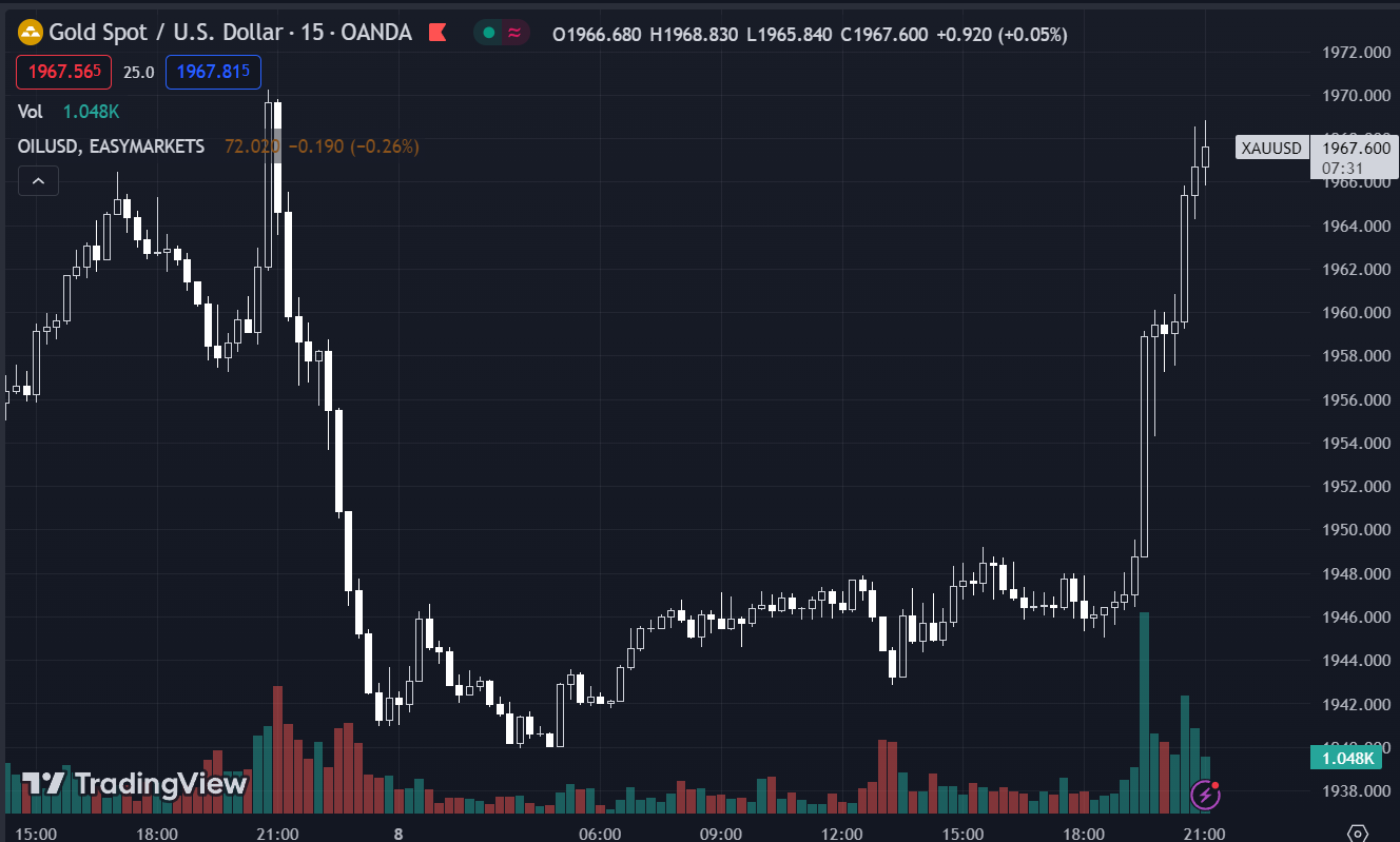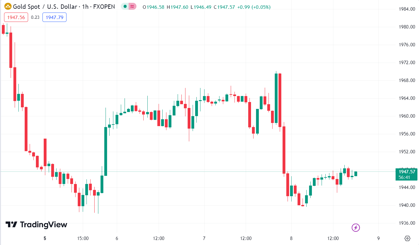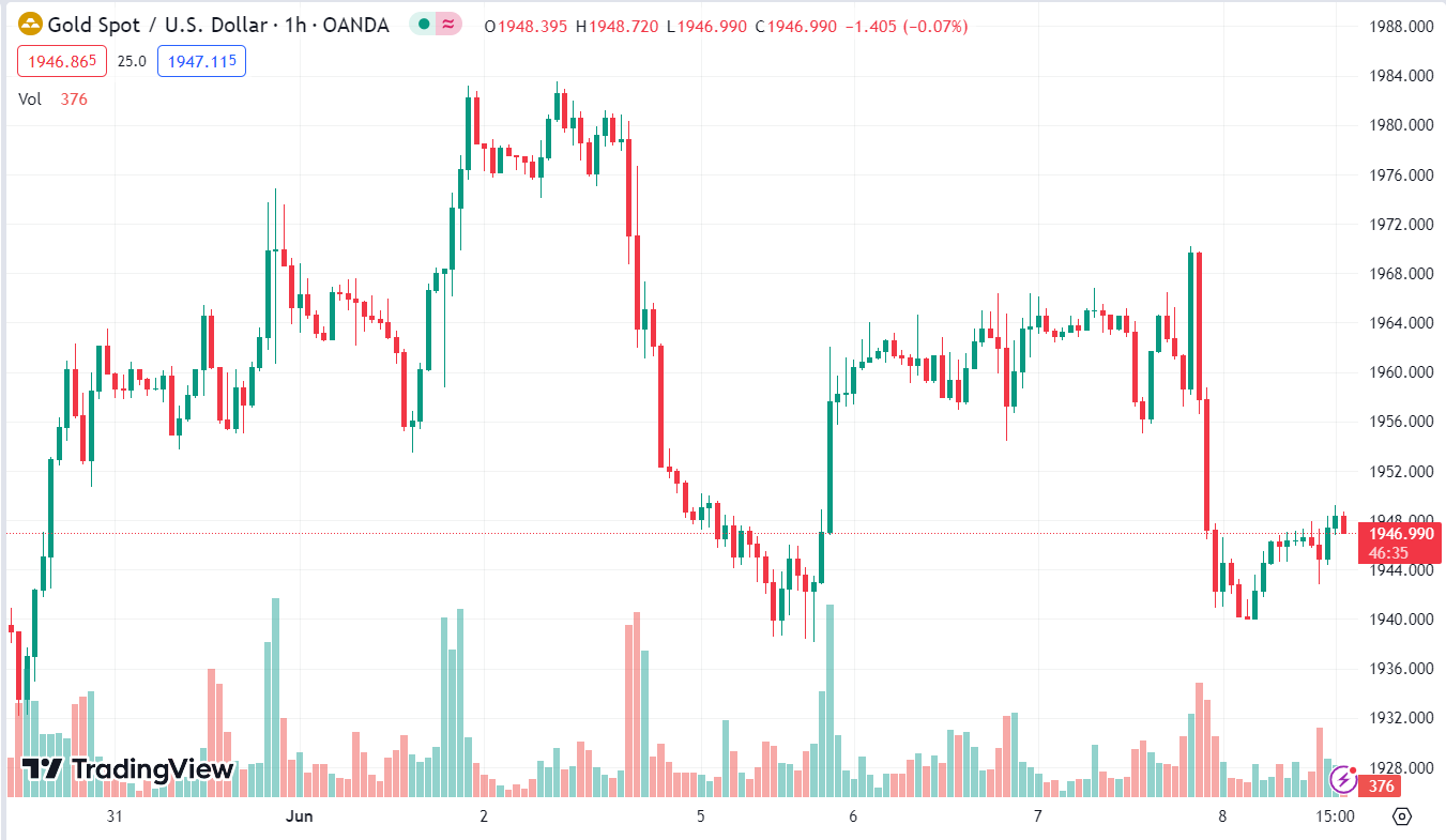 XAUUSD giảm 0.07%, hiện ở $1,946.99