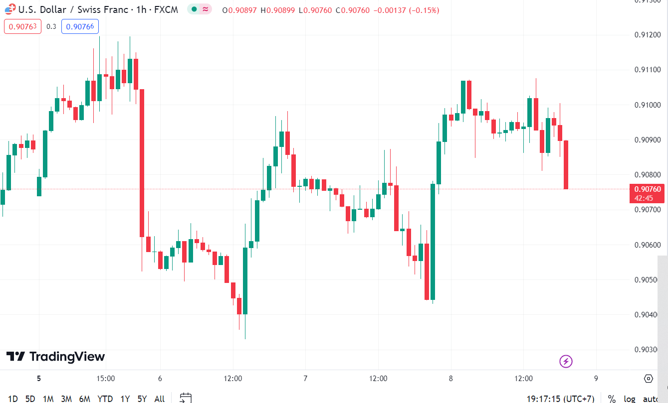 USDCHF hiện đang ở mức 0.90760.