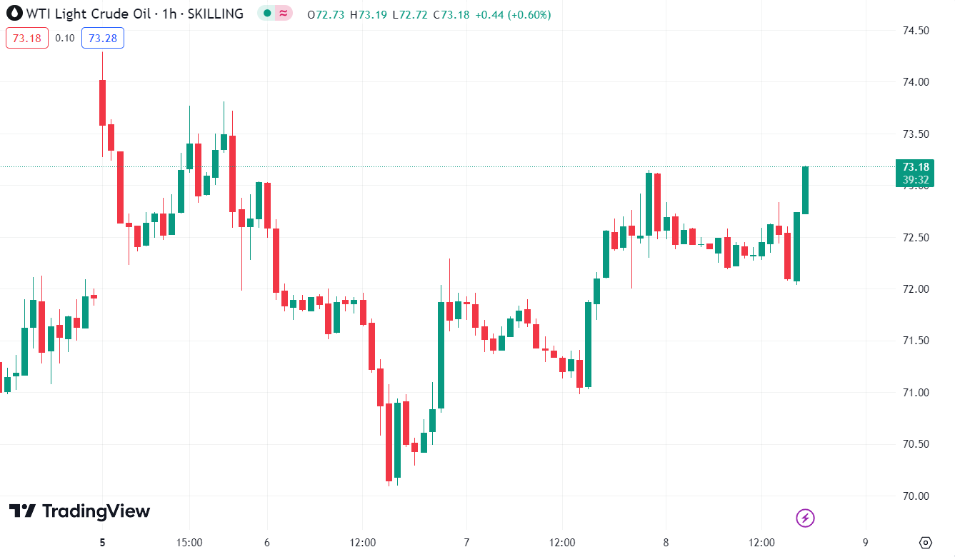 Dầu thô WTI tăng hơn 1% trong ngày, hiện đang ở mức $73.18/thùng.