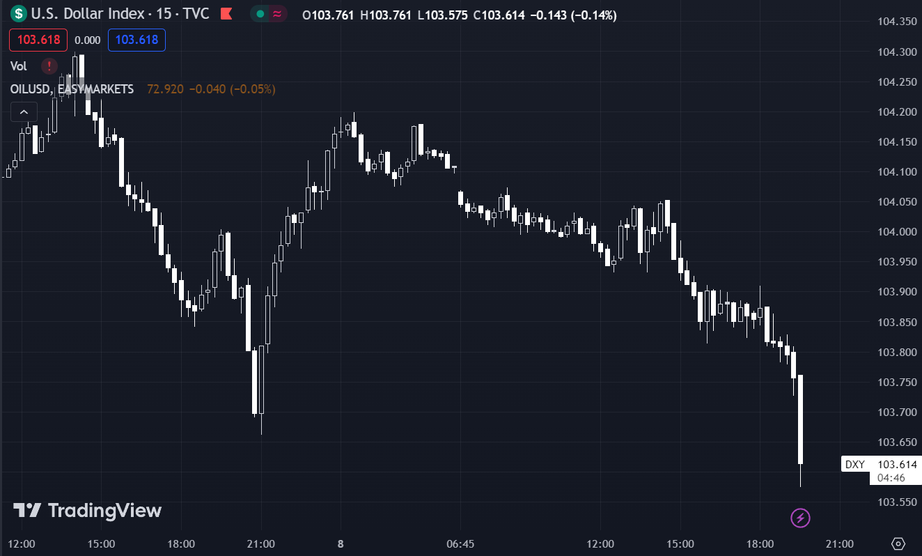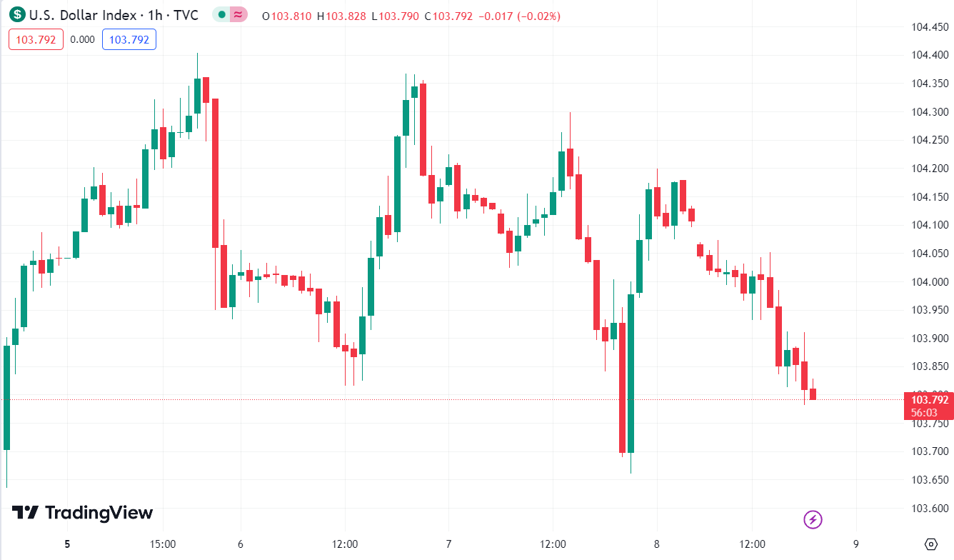 USD tiếp tục suy yếu trên diện rộng, hiện DXY đang ở mức 103.792.