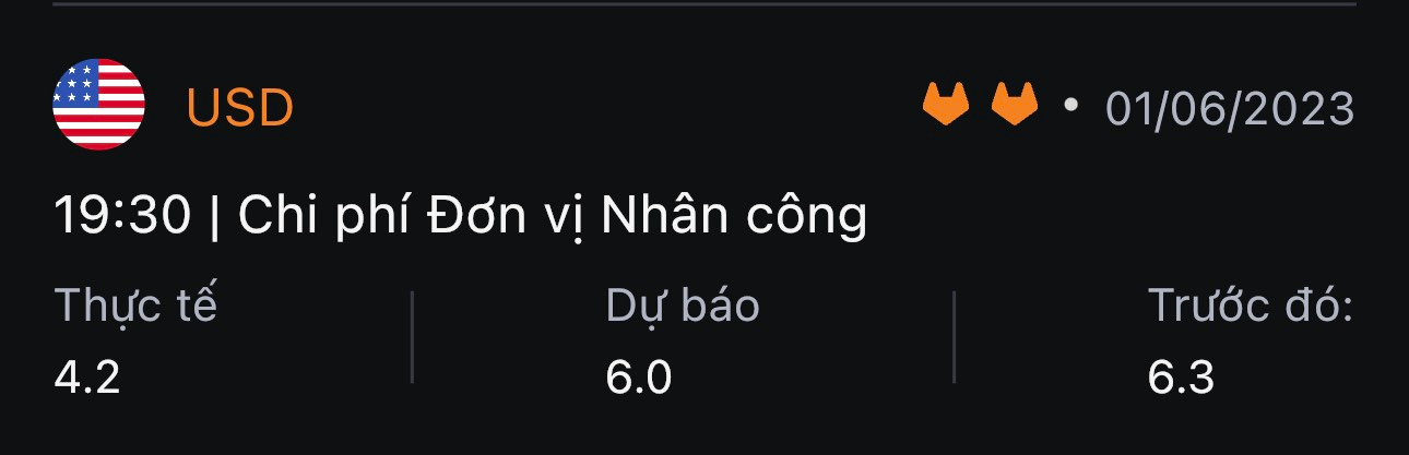 - Chi phí đơn vị nhân công Mỹ quý 1 +4.2%, thấp hơn con số +6.0% dự kiến