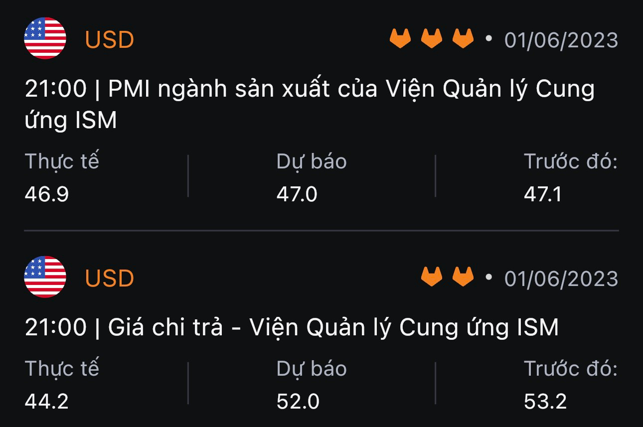 - ISM công bố PMI Sản xuất tháng 5 của Mỹ đạt 46.9 điểm, thấp hơn so với 47.1 điểm trước đó