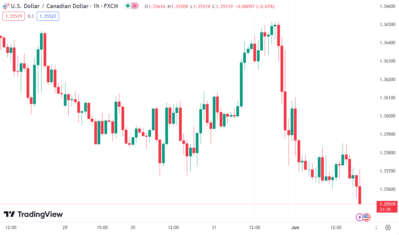 USDCAD tiếp tục giảm trong phiên Âu, hiện đang dao động quanh mức 1.35519.