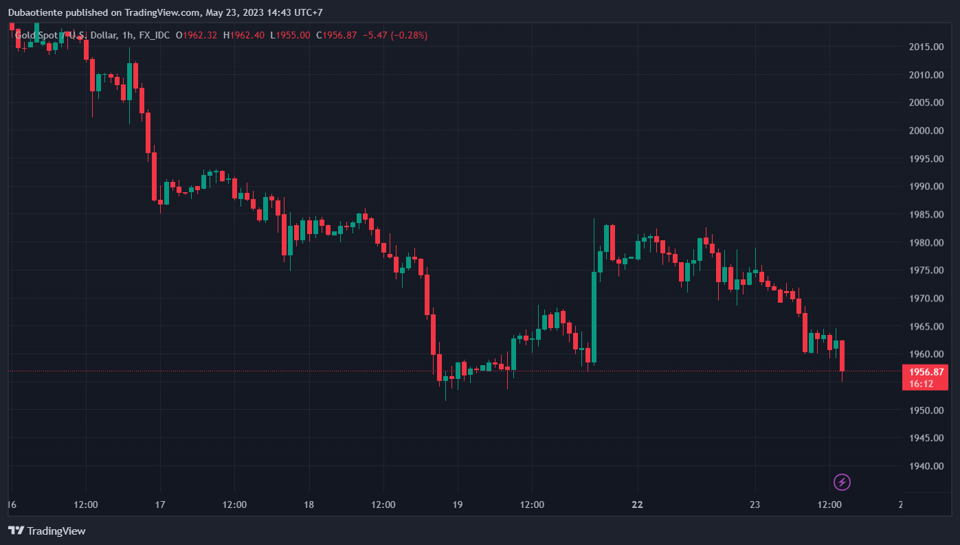 Sau khi giảm xuống $1,960, vàng hiện đã phục hồi nhẹ lên trên $1,963 ở mức $1,963.51.