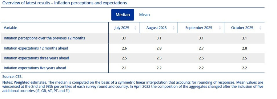 Cung tiền Eurozone trong tháng 10 cho thấy bức tranh ổn định khi M3 tăng 2.8% so với cùng kỳ, đúng như dự báo và không đổi so với tháng trước, trong khi M1 – thước đo tiền hẹp phản ánh nhu cầu thanh khoản – nhích lên 5.2% từ 5.0% của tháng 9.