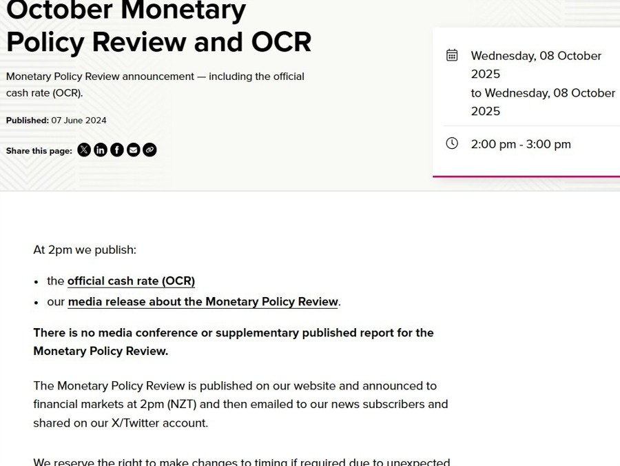 Tuyên bố chính thức của RBNZ dự kiến công bố lúc 8:00 sáng ngày 5/10/2025 theo giờ Việt Nam