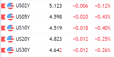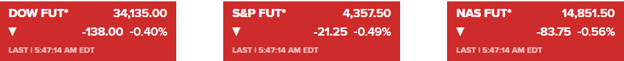 Hợp đồng tương lai S&P 500 hiện giảm 0.7%. Trong khi, hợp đồng tương lai Nasdaq giảm 0.8% và hợp đồng tương lai Dow giảm 0.5% trong ngày. Thêm vào đó, lợi suất trái phiếu kho bạc kỳ hạn 10 năm hiện ở mức 4.558%.