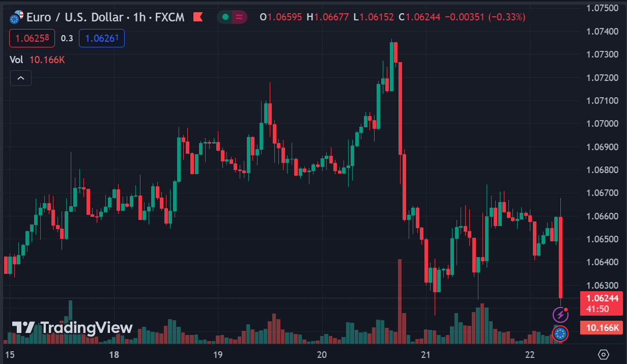 Dữ liệu tại Pháp gây thất vọng, trong khi các chỉ số m/m tại Đức tăng nhẹ nhưng vẫn phản ánh sự thu hẹp của các lĩnh vực tại nền kinh tế lớn nhất khu vực châu Âu trong quý. EUR/USD giảm mạnh từ 1.0665 xuống 1.0615, sau đó hồi nhẹ lên vùng 1.0640 - 1.0650.