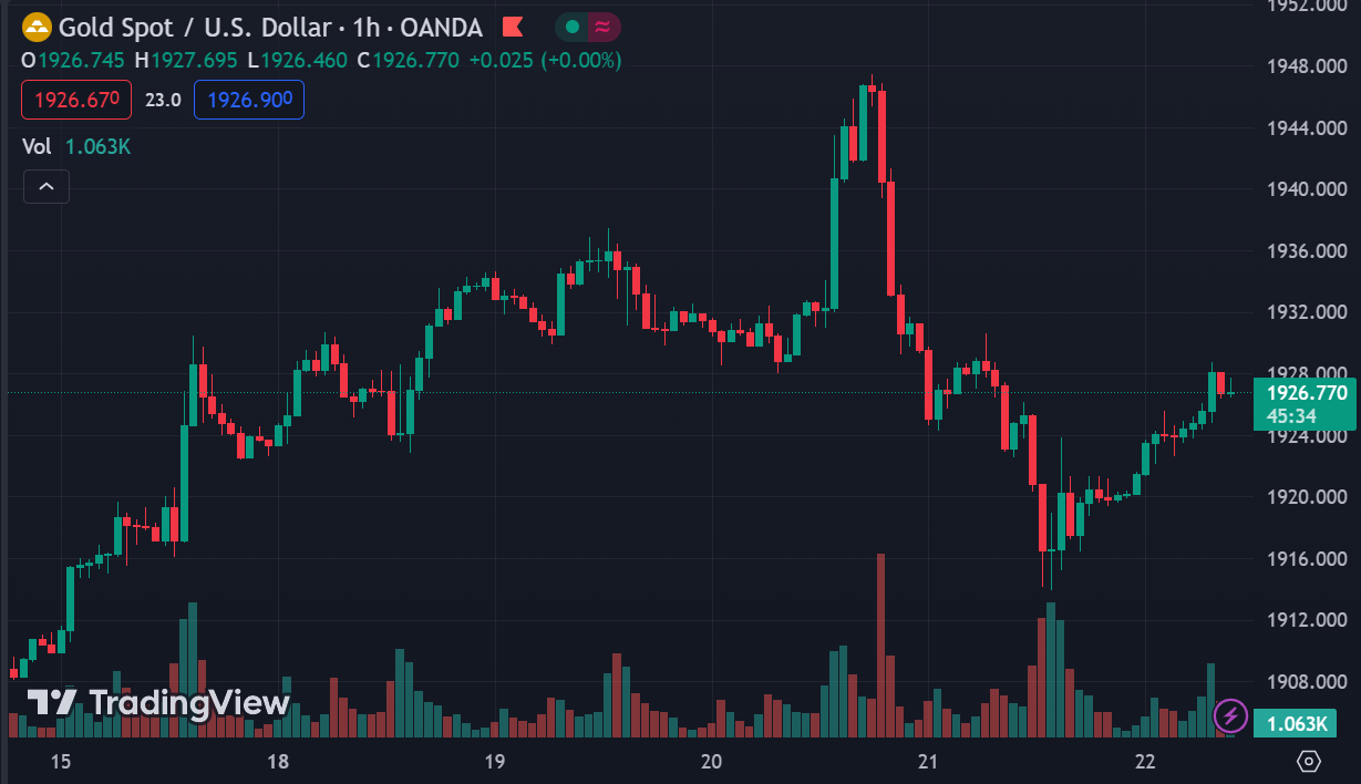 Vàng tăng 0.21% trong ngày, hiện ở $1,924.02