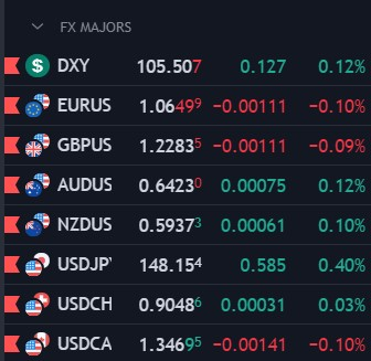 JPY tiếp tục chịu áp lực từ khi thống đốc BoJ Ueda rút lại các bình luận "giảm dần nới lỏng để tránh biến động lớn trên thị trường" vào cuối tuần trước. Lợi suất tăng cao hơn cũng phần nào hỗ trợ cho USD/JPY +0.5% lên 148.25 trong ngày.
