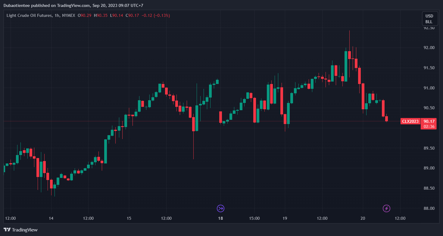 Vàng biến động với độ tương quan thấp với lợi suất. Vàng đi ngang trong biên độ hẹp, từ khoảng $1930 - 1937/oz trong phần lớn ngày giao dịch. Chốt phiên, vàng giảm nhẹ gần $2 xuống 1931.30/oz. Trên thị trường trái phiếu, lợi suất có 2 nhịp tăng mạnh trong đêm và vào đầu phiên Mỹ sau khi dữ liệu nhà ở Hoa Kỳ được công bố. Lợi suất 2 năm và 10 năm lần lượt đóng cửa tăng 3.6bp và 5.4bp lên 5.094% và 4.361% - quay trở lại gần mức cao nhất kể từ tháng 12/2007. Dầu thô chạm mốc $92/thùng - mức cao nhất kể từ tháng 12 năm ngoái vào đầu phiên Mỹ, nhưng nhanh chóng thu hẹp đà tăng về gần $90.50/thùng khi đóng cửa ngày giao dịch. Bitcoin đi ngang sau khi chưa thể chạm mốc 28.5K sau 2 nhịp tăng mạnh vào đầu phiên Âu và đầu phiên Mỹ. Chốt phiên, BTC duy trì quanh 27.2K, đánh dấu đà phục hồi gần $450.