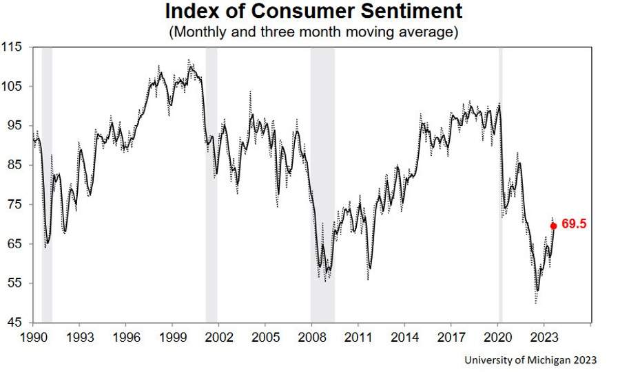 Vàng có một phiên giao dịch khởi sắc, bắt đầu với đà tăng tích cực (khoảng $10) từ đầu phiên Á nhờ loạt dữ liệu kinh tế tháng 8 tích cực tại Trung Quốc. Cả doanh số bán lẻ, sản xuất công nghiệp đểu tăng mạnh hơn dự kiến, trong khi thất nghiệp giảm nhẹ. Sang phiên Mỹ, bật lên gần $14, chạm đỉnh ngày tại $1930/oz sau dữ liệu UMich vào đầu phiên, nhưng tâm lý thị trường giảm sút đã khiến vàng quay đầu giảm về $1923.56/oz. Trên thị trường trái phiếu, lợi suất 2 năm và 10 năm lần lượt tăng 2.1bp và 4.2bp lên 5.037% và 4.334%. Dầu thô đảo chiều tăng mạnh sau khi chạm đáy ngày tại gần $89.20/thùng. Chốt phiên, dầu WTI tăng $0.61 lên $90.77/thùng. BTC nhìn chung đi ngang quanh 26.5K trong phần lớn 3 ngày giao dịch cuối tuần, sau khi không thể chạm đến 26.2K trong buổi sớm ngày giao dịch thứ Bảy và hồi lại lên trên vùng 26.8K.